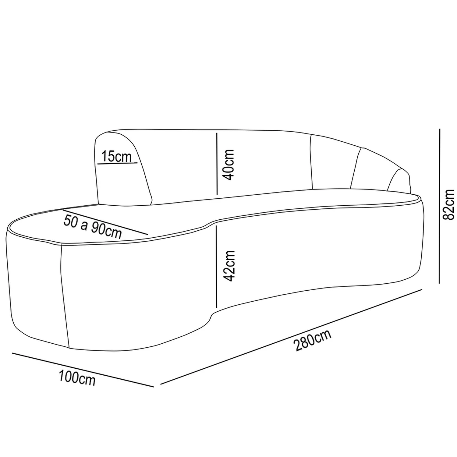 - A profundidade do assento é variável devido ao design orgânico dos espaços com e sem encosto.