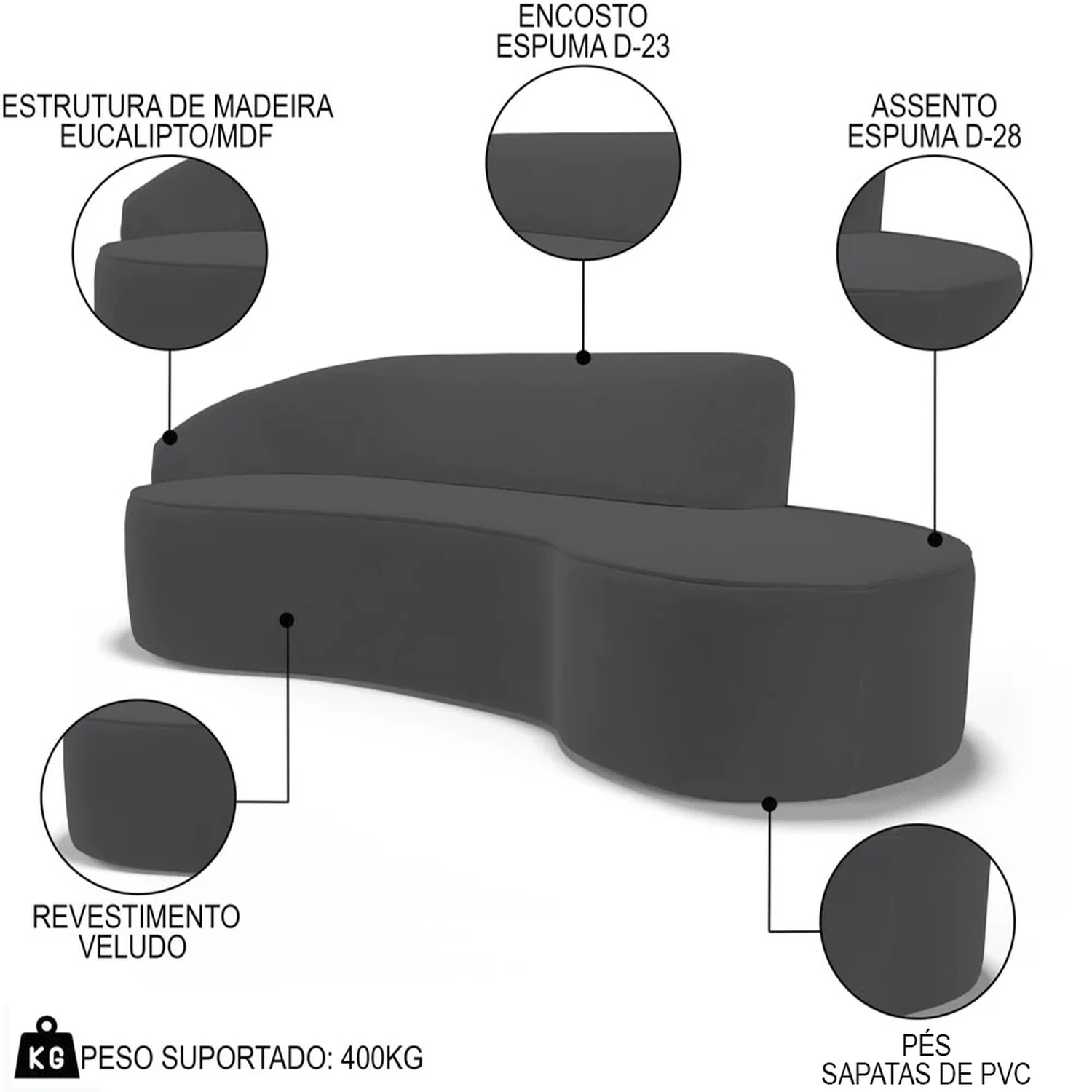 Material do Assento: Espuma D-28.