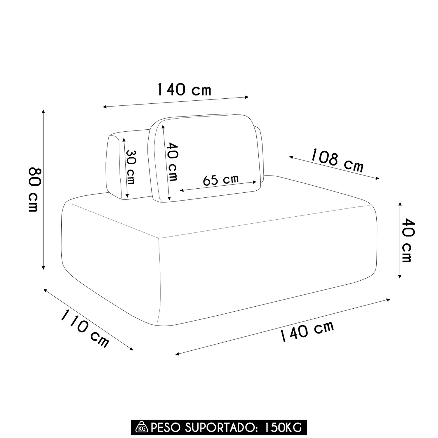 Altura da almofada: 40 cm.