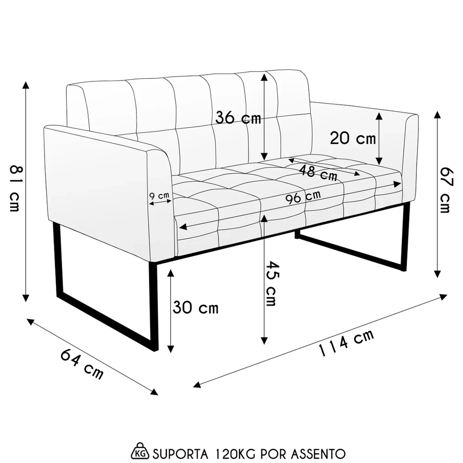 Esta Namoradeira é revestida em Boucle, que é confortável, suave ao toque, e ainda valoriza o design do sofá. Os braços e encosto são confortáveis em espuma D-18, já o assento é com espuma D-26 de alta densidade, que garante um assento firme e aconchegante, ideal para relaxar após um dia cansativo. A base industrial é um charme à parte, que confere um toque Moderno e sofisticado à peça. O Sofá Namoradeira tem uma estrutura resistente e suporta até 120 kg. A montagem é muito simples, pois ela já vem pronta, bastando apenas fixar a base com os parafusos que acompanham o produto. A limpeza também é muito prática, pois basta utilizar um pano limpo e levemente úmido, sem produtos abrasivos, para manter a sua Namoradeira sempre em bom estado. Sem dúvidas essa Namoradeira 2 Lugares, vai transformar a sua sala em um ambiente mais confortável e estiloso!