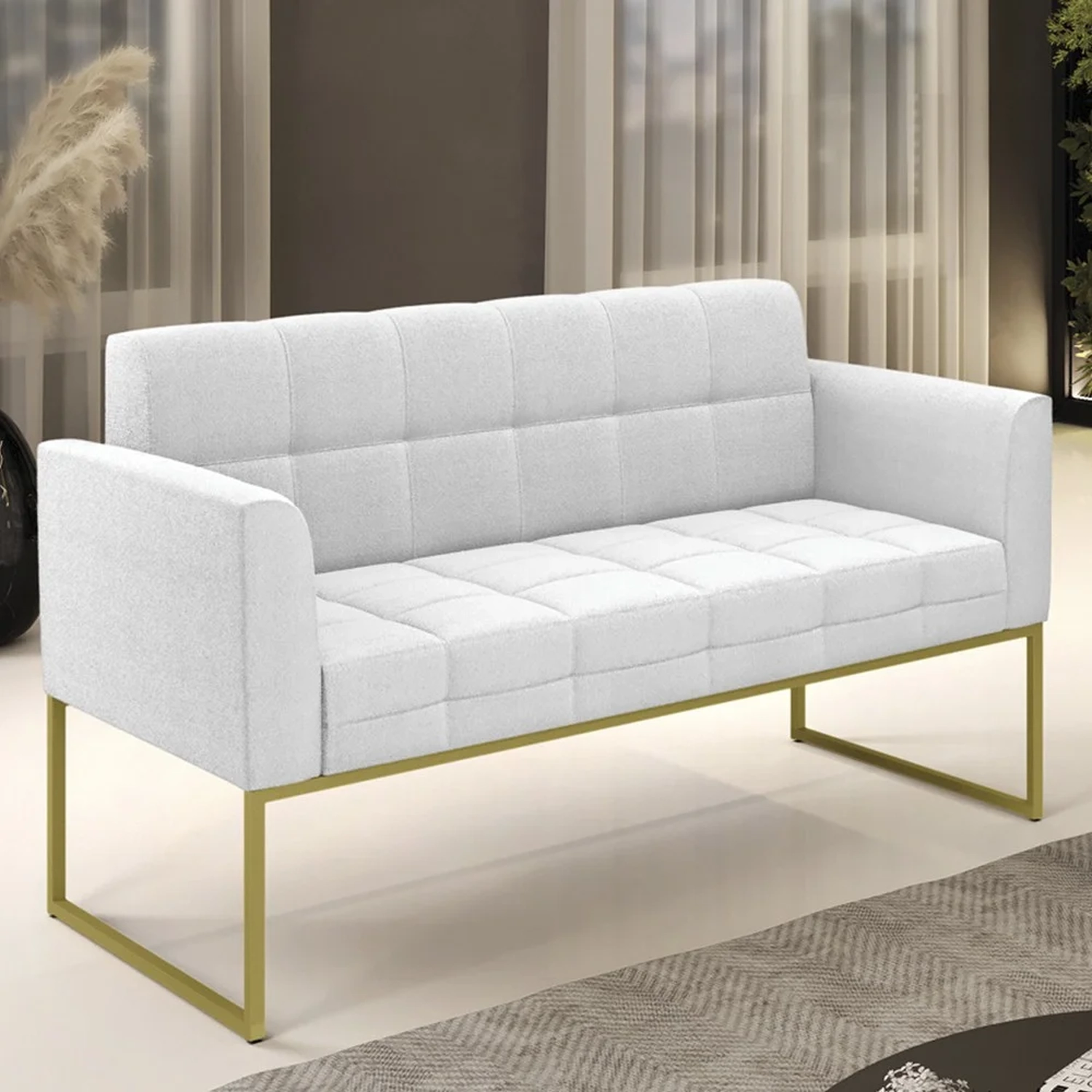 Querida por muitos pela beleza e conforto que proporciona, sua versatilidade dá a liberdade de poder usar na sua Sala De Estar, recepção e onde mais desejar! Você vai adorar o Sofá Namoradeira Base Industrial Dourado Ana Boucle Off White, da Ibiza!