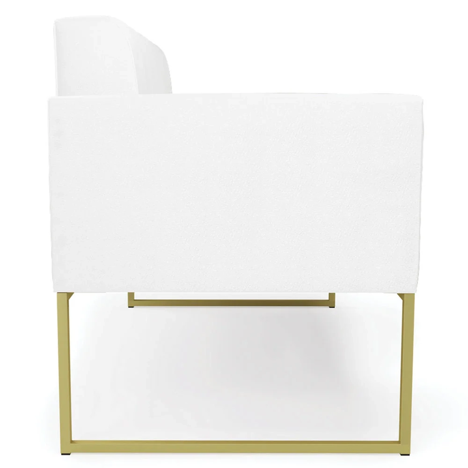 Querida por muitos pela beleza e conforto que proporciona, sua versatilidade dá a liberdade de poder usar na sua Sala De Estar, recepção e onde mais desejar! Você vai adorar o Sofá Namoradeira Base Industrial Dourado Ana Sintético Branco, da Ibiza!