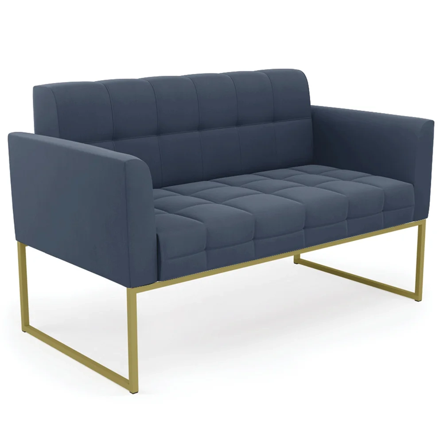 Querida por muitos pela beleza e conforto que proporciona, sua versatilidade dá a liberdade de poder usar na sua Sala De Estar, recepção e onde mais desejar! Você vai adorar o Sofá Namoradeira Base Industrial Dourado Ana Suede Azul Marinho, da Ibiza!