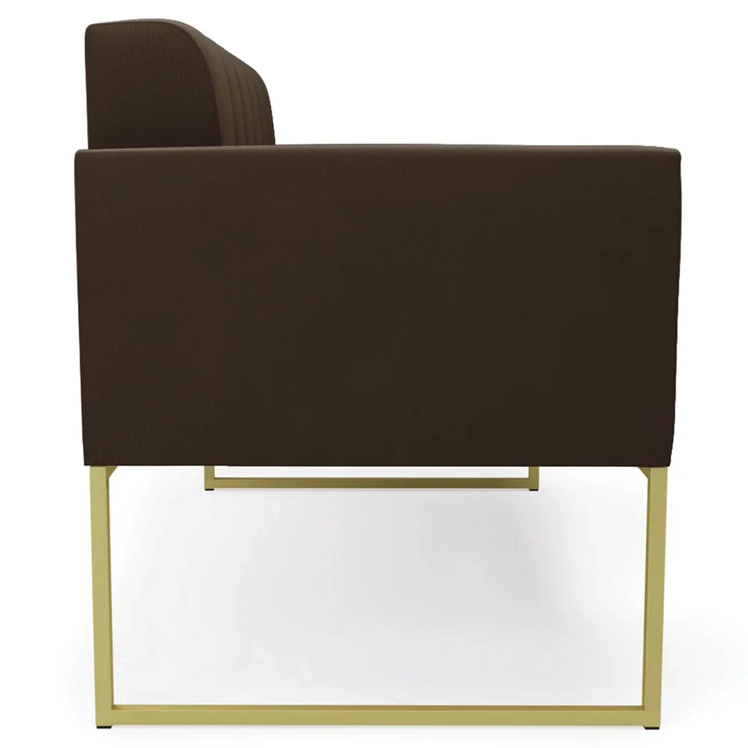 Querida por muitos pela beleza e conforto que proporciona, sua versatilidade dá a liberdade de poder usar na sua Sala De Estar, recepção e onde mais desejar! Você vai adorar o Sofá Namoradeira Base Industrial Dourado Ana Suede Marrom, da Ibiza!