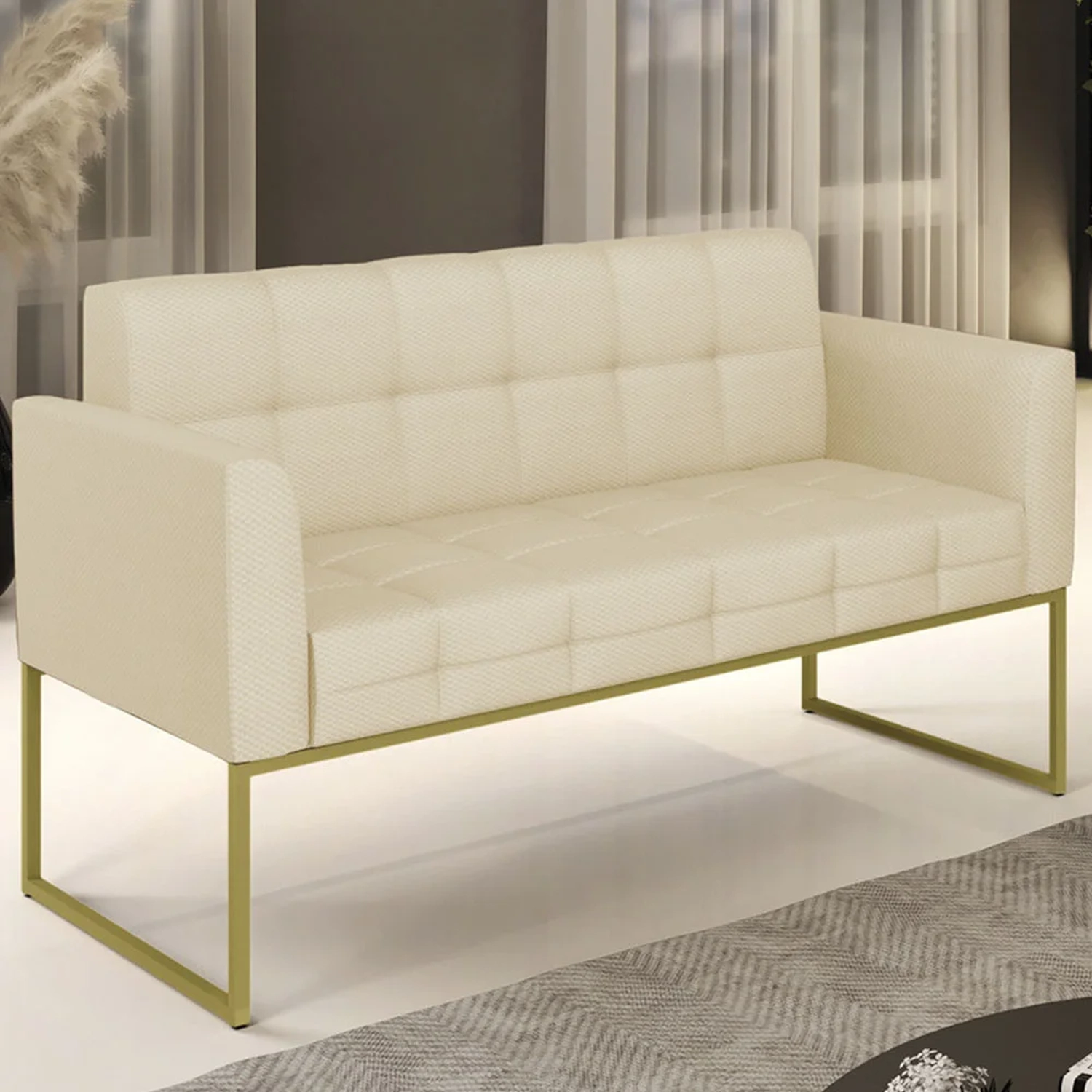 Querida por muitos pela beleza e conforto que proporciona, sua versatilidade dá a liberdade de poder usar na sua Sala De Estar, recepção e onde mais desejar! Você vai adorar o Sofá Namoradeira Base Industrial Dourado Ana Veludo Luxo Off White, da Ibiza!