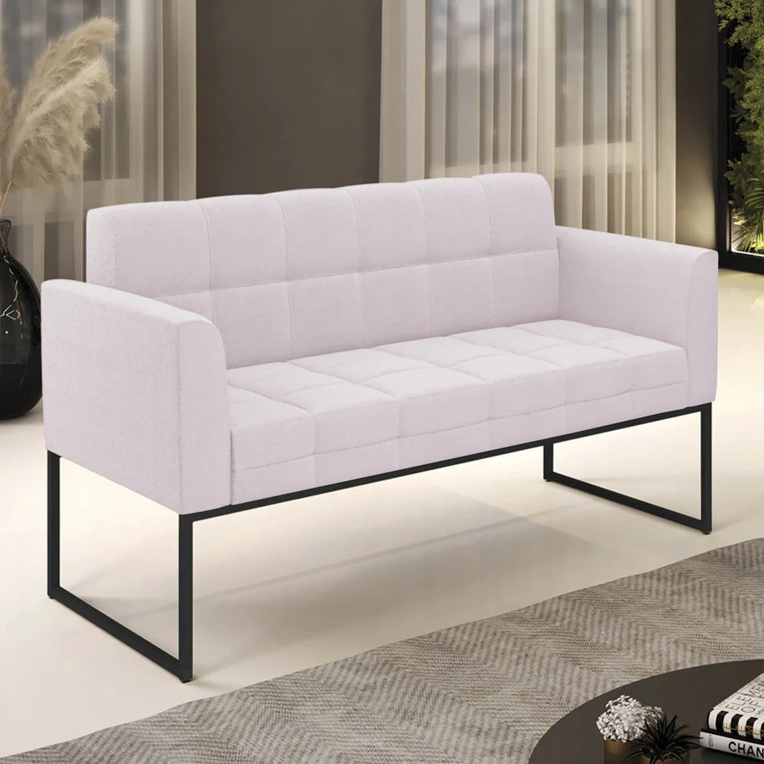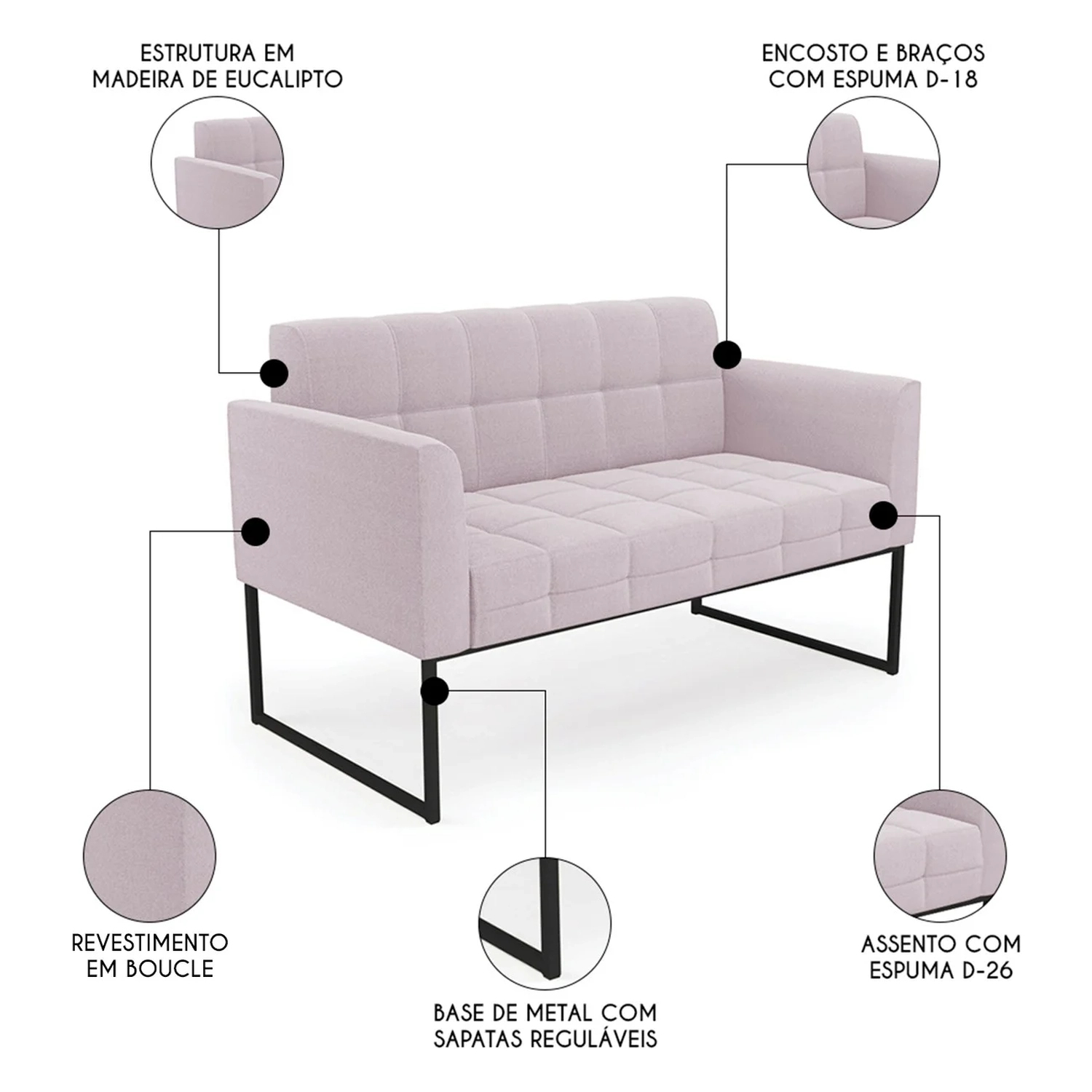 Querida por muitos pela beleza e conforto que proporciona, sua versatilidade dá a liberdade de poder usar na sua Sala De Estar, recepção e onde mais desejar! Você vai adorar o Sofá Namoradeira Base Industrial Preto Ana Boucle Rosê, da Ibiza!