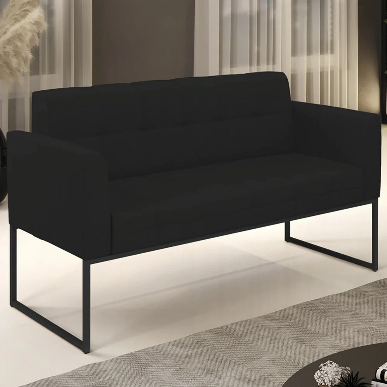 Querida por muitos pela beleza e conforto que proporciona, sua versatilidade dá a liberdade de poder usar na sua Sala De Estar, recepção e onde mais desejar! Você vai adorar o Sofá Namoradeira Base Industrial Preto Ana Linho Preto, da Ibiza!