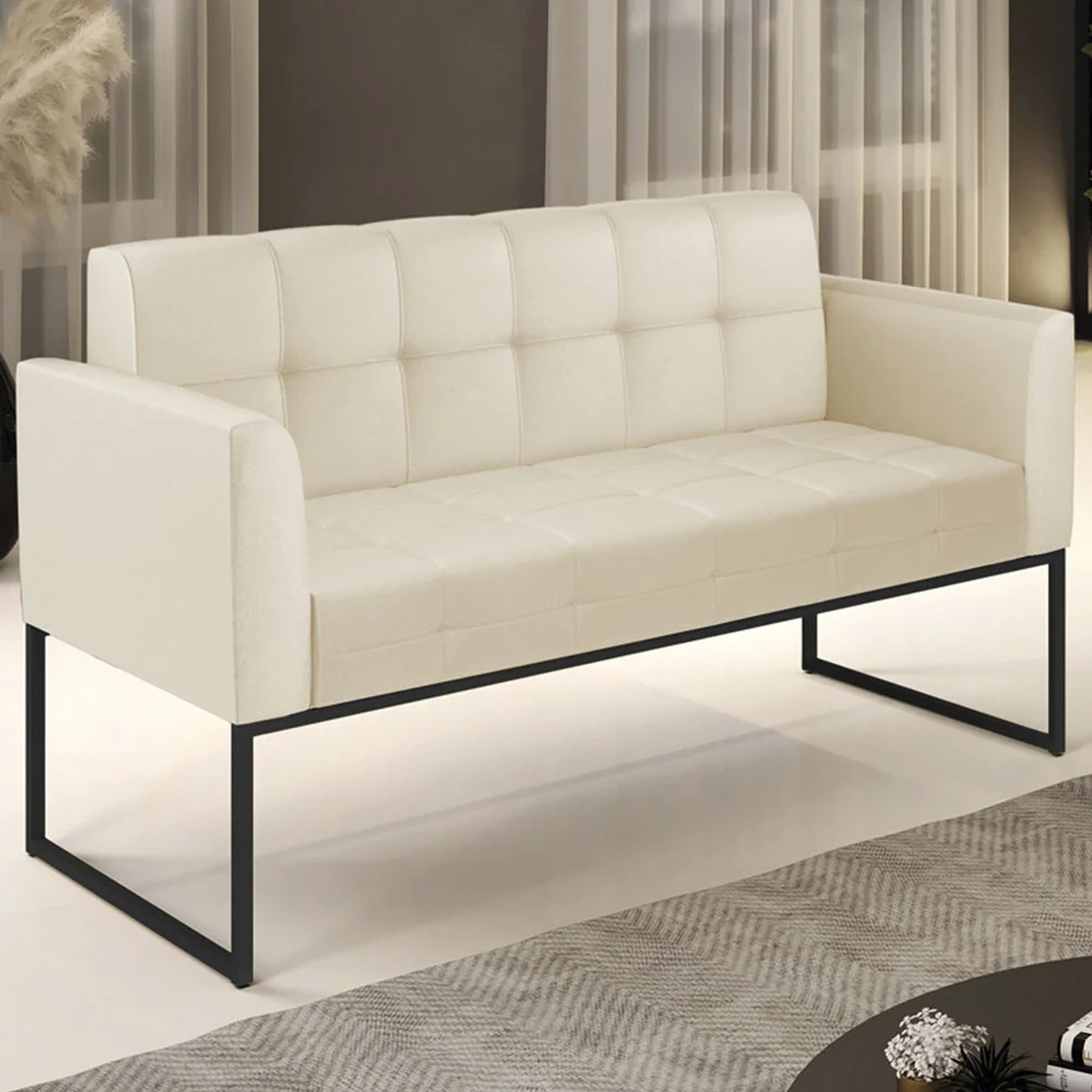 Querida por muitos pela beleza e conforto que proporciona, sua versatilidade dá a liberdade de poder usar na sua Sala De Estar, recepção e onde mais desejar! Você vai adorar o Sofá Namoradeira Base Industrial Preto Ana Sintético Bege, da Ibiza!