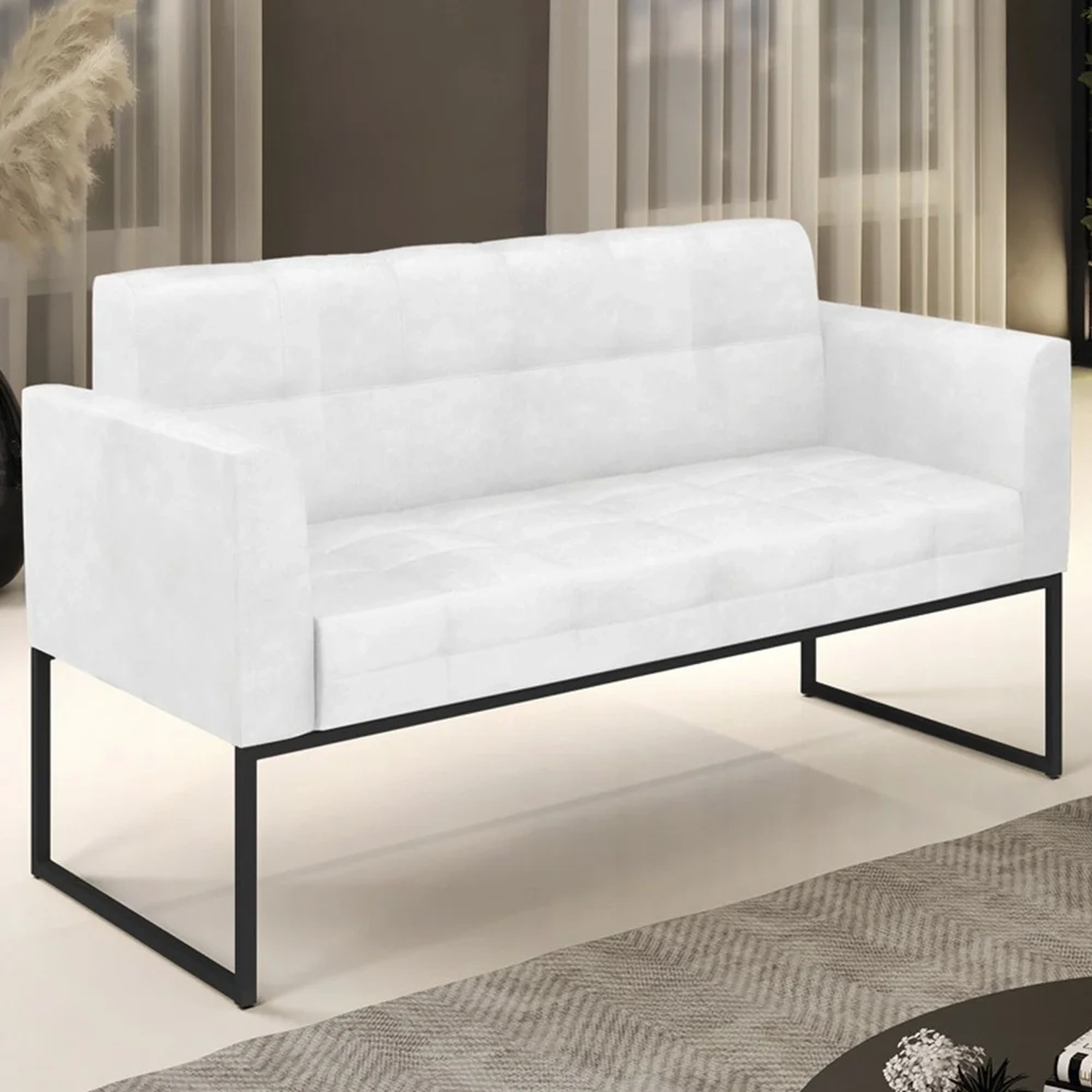 Querida por muitos pela beleza e conforto que proporciona, sua versatilidade dá a liberdade de poder usar na sua Sala De Estar, recepção e onde mais desejar! Você vai adorar o Sofá Namoradeira Base Industrial Preto Ana Sintético PU Branco, da Ibiza!