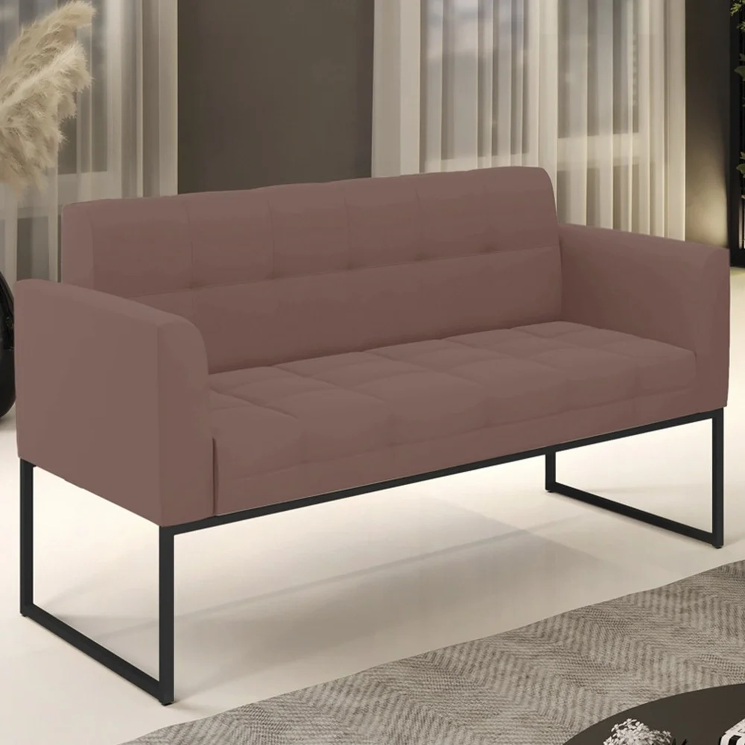 Querida por muitos pela beleza e conforto que proporciona, sua versatilidade dá a liberdade de poder usar na sua Sala De Estar, recepção e onde mais desejar! Você vai adorar o Sofá Namoradeira Base Industrial Preto Ana Veludo Rosê, da Ibiza!