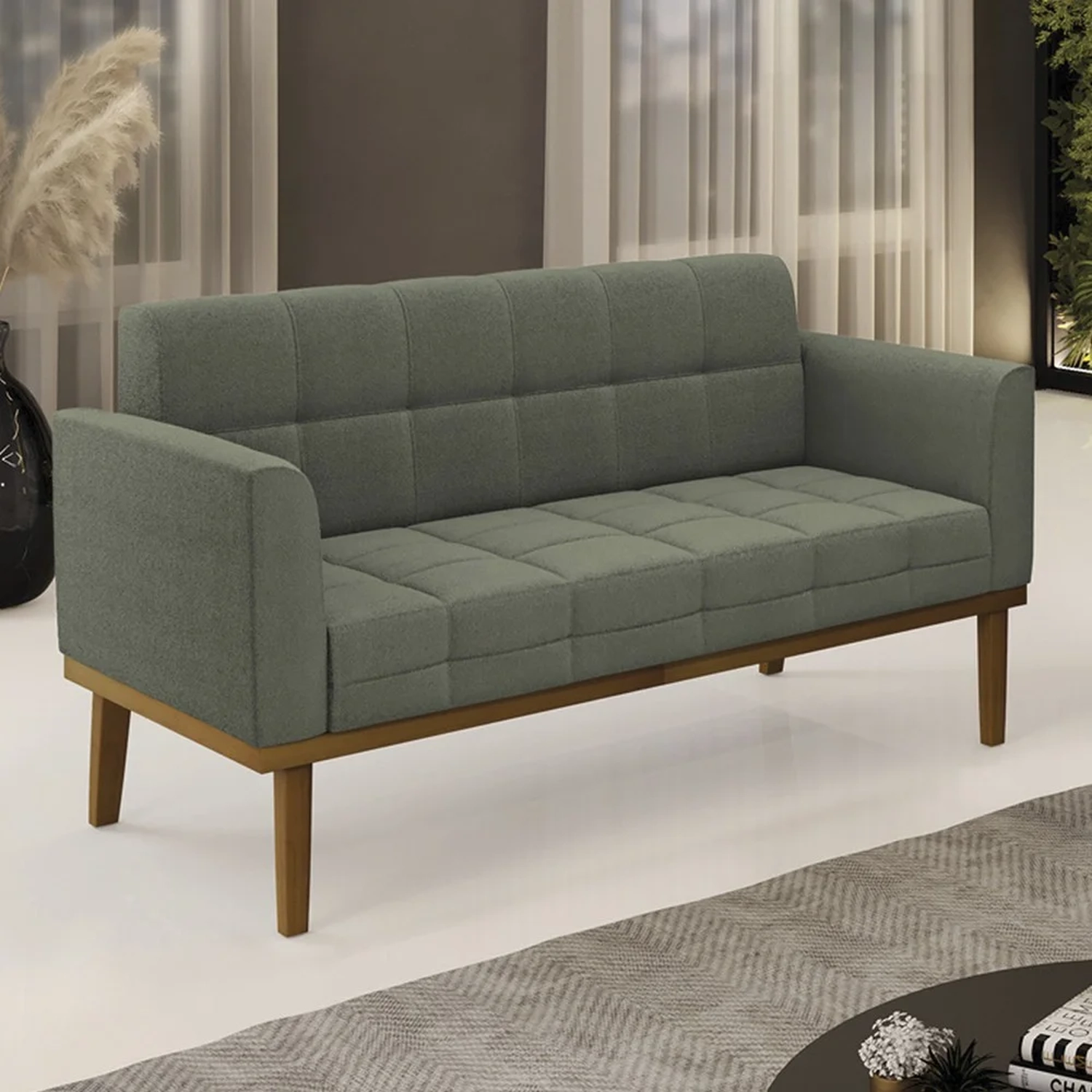 Querida por muitos pela beleza e conforto que proporciona, sua versatilidade dá a liberdade de poder usar na sua Sala De Estar, recepção e onde mais desejar! Você vai adorar o Sofá Namoradeira Base Madeira Castanho Ana Boucle Menta, da Ibiza!