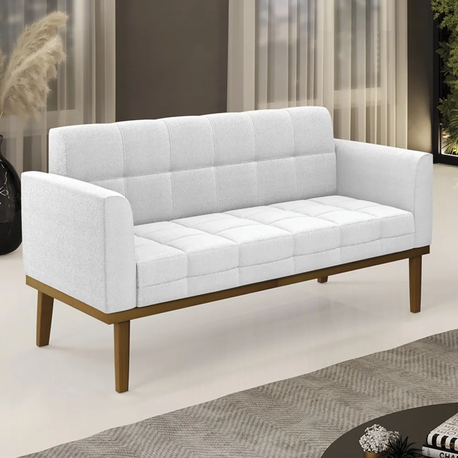 Querida por muitos pela beleza e conforto que proporciona, sua versatilidade dá a liberdade de poder usar na sua Sala De Estar, recepção e onde mais desejar! Você vai adorar o Sofá Namoradeira Base Madeira Castanho Ana Boucle Off White, da Ibiza!