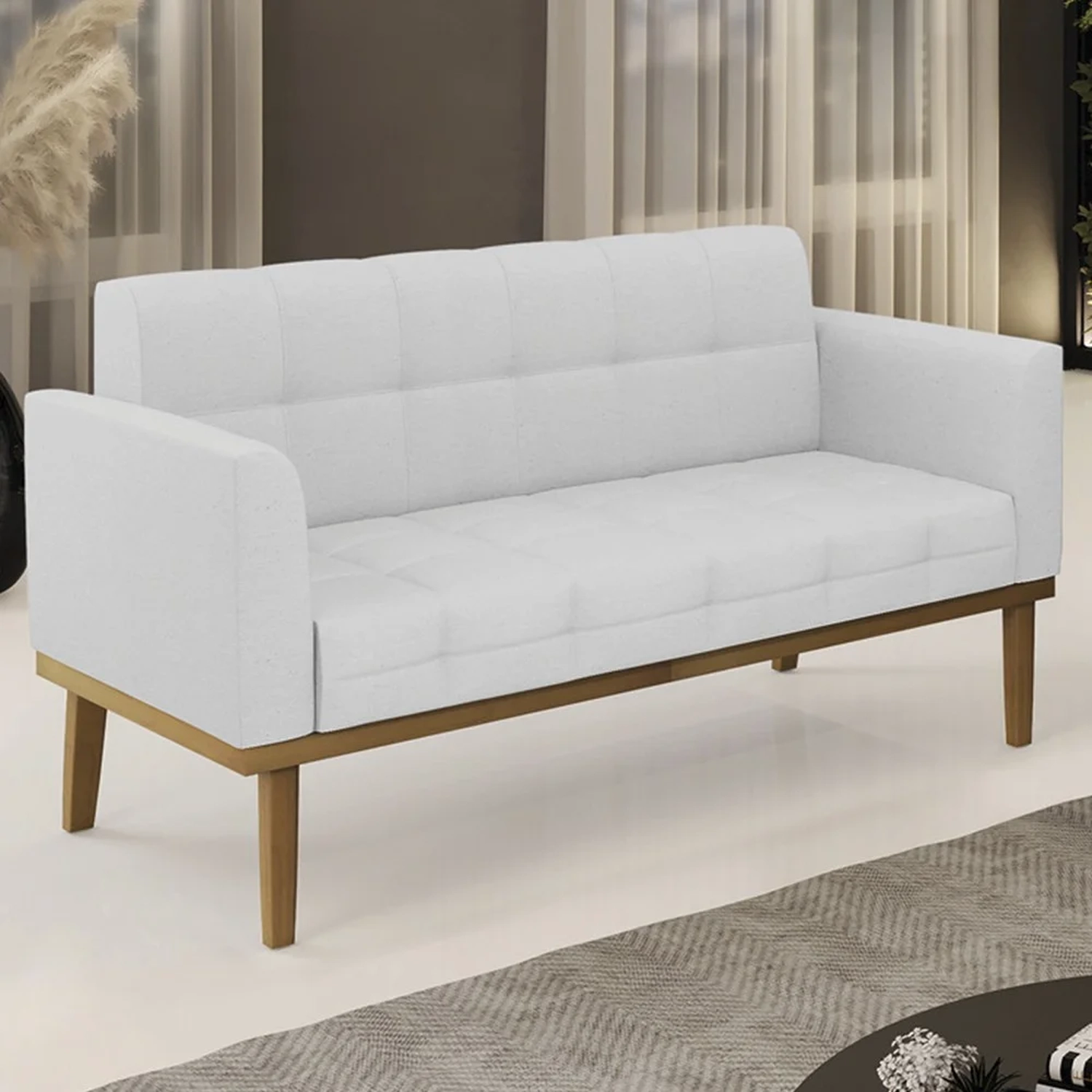 Esta Namoradeira é revestida em Linho, que é durável e fácil de limpar, e ainda valoriza o design do sofá. Os braços e encosto são confortáveis em espuma D-18, já o assento é com espuma D-26 de alta densidade, que garante um assento firme e aconchegante, ideal para relaxar após um dia cansativo. A base em madeira de eucalipto é um charme à parte, que confere um toque Rústico e sofisticado à peça. O Sofá Namoradeira tem uma estrutura resistente e suporta até 120 kg. A montagem é muito simples, pois ela já vem pronta, bastando apenas fixar a base com os parafusos que acompanham o produto. A limpeza também é muito prática, pois basta utilizar um pano limpo e levemente úmido, sem produtos abrasivos, para manter a sua Namoradeira sempre em bom estado. Sem dúvidas essa Namoradeira 2 Lugares, vai transformar a sua sala em um ambiente mais confortável e estiloso!