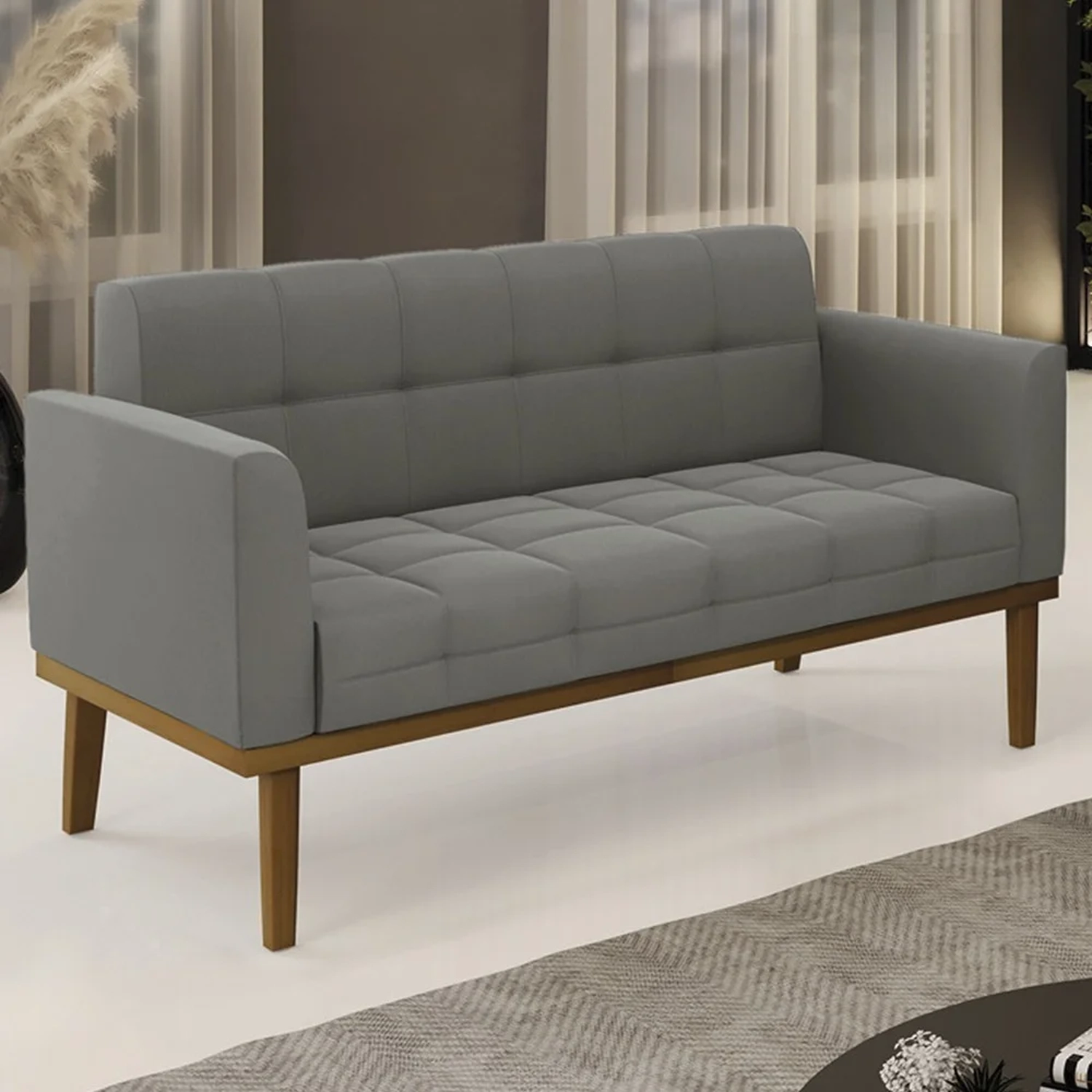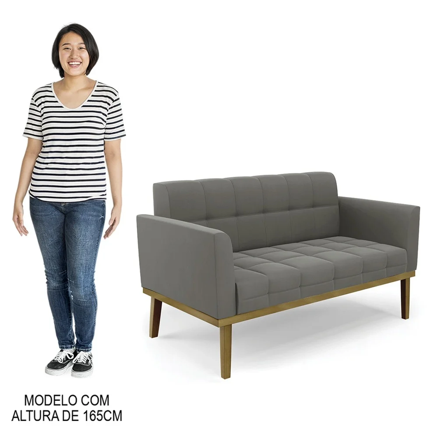 Querida por muitos pela beleza e conforto que proporciona, sua versatilidade dá a liberdade de poder usar na sua Sala De Estar, recepção e onde mais desejar! Você vai adorar o Sofá Namoradeira Base Madeira Castanho Ana Suede Grafite, da Ibiza!