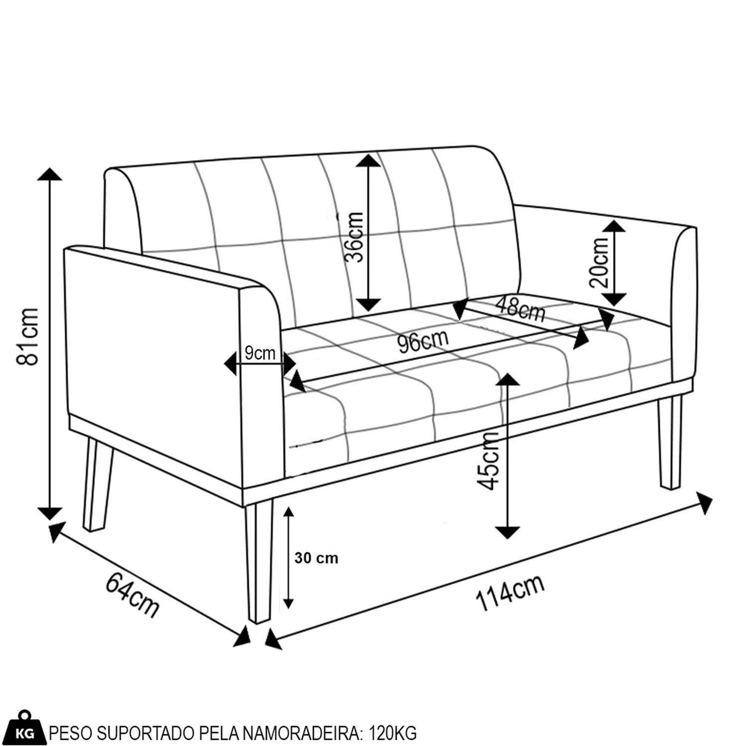 Largura do assento: 96 cm.