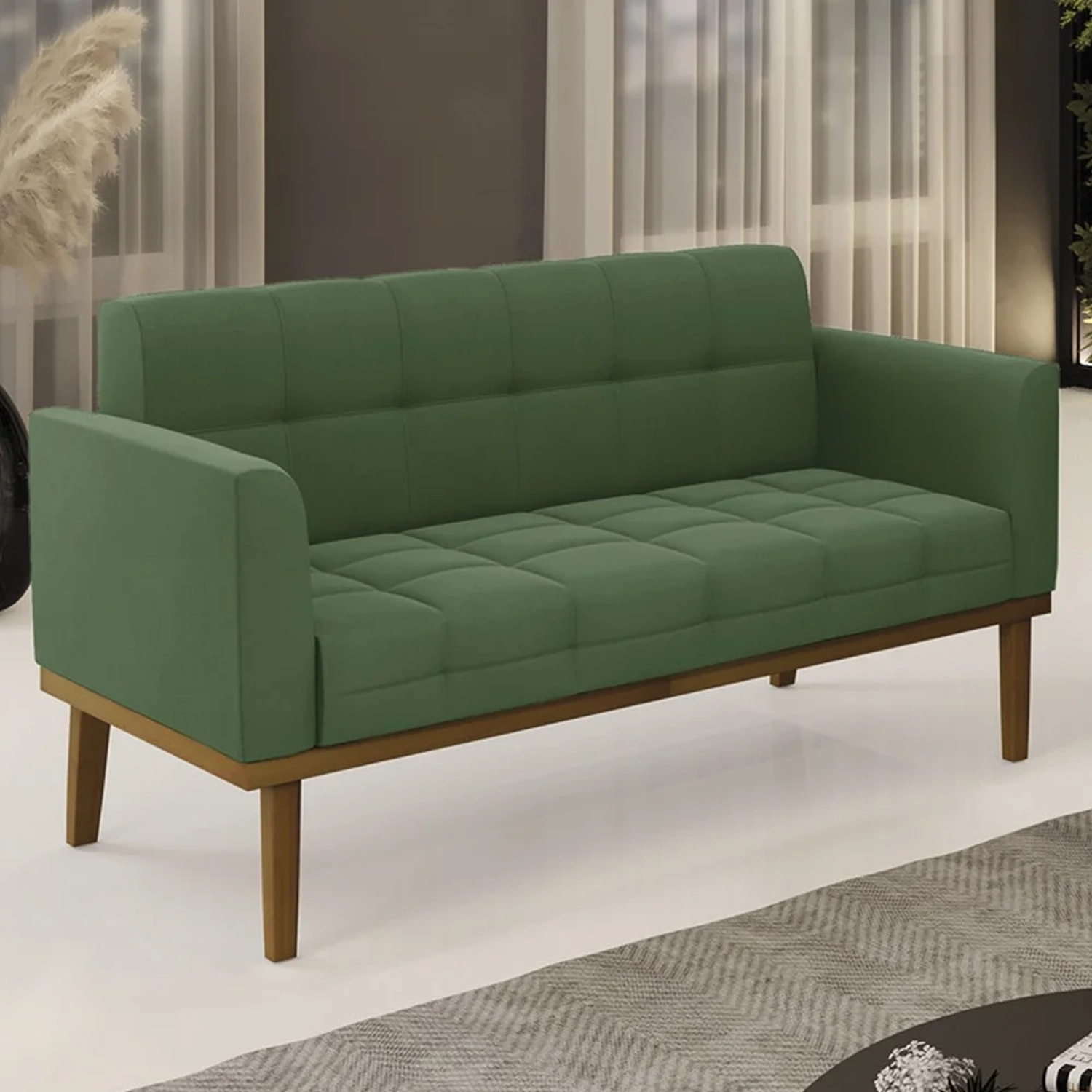 Querida por muitos pela beleza e conforto que proporciona, sua versatilidade dá a liberdade de poder usar na sua Sala De Estar, recepção e onde mais desejar! Você vai adorar o Sofá Namoradeira Base Madeira Castanho Ana Suede Verde, da Ibiza!