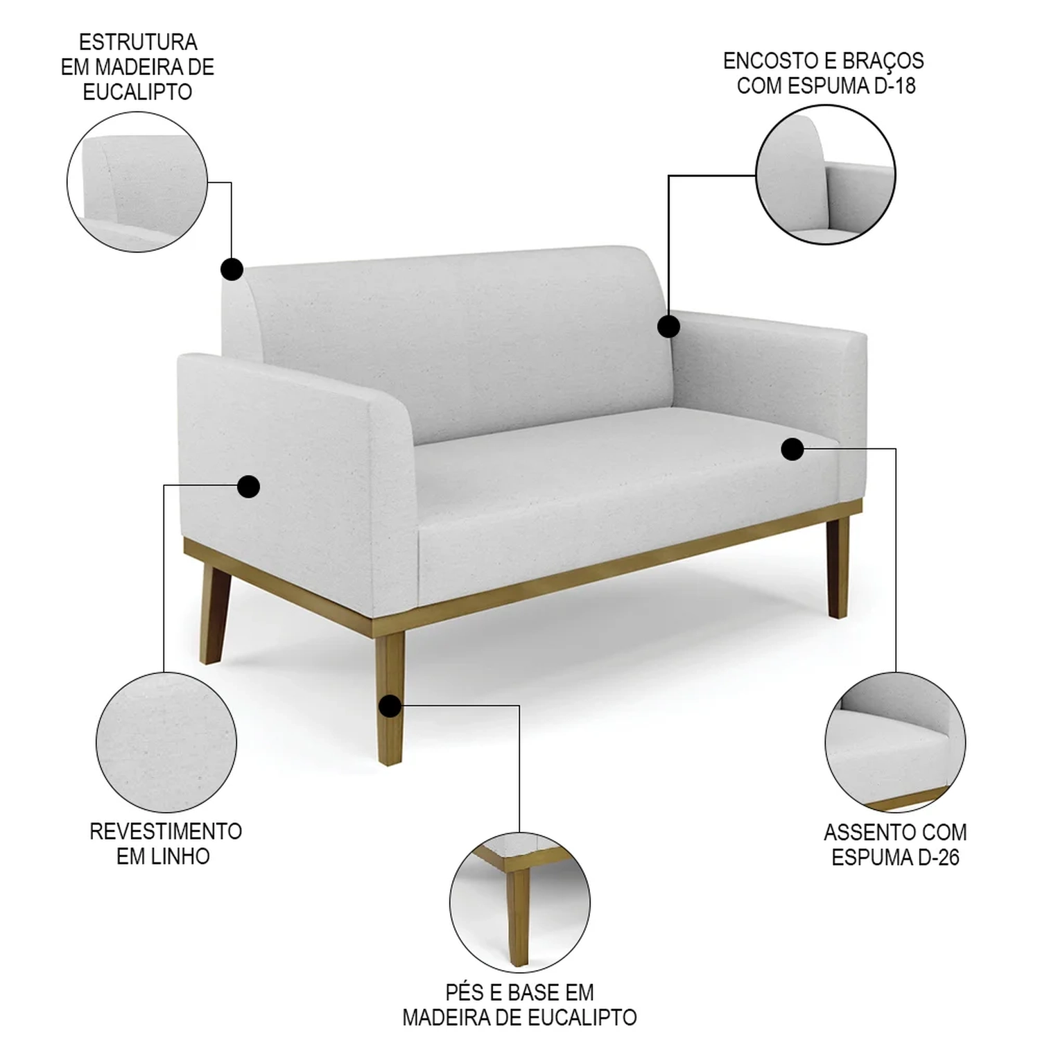 Esta Namoradeira é revestida em Linho, que é durável e fácil de limpar, e ainda valoriza o design do sofá. Os braços e encosto são confortáveis em espuma D-18, já o assento é com espuma D-26 de alta densidade, que garante um assento firme e aconchegante, ideal para relaxar após um dia cansativo. A base em madeira de eucalipto é um charme à parte, que confere um toque Rústico e sofisticado à peça. O Sofá Namoradeira tem uma estrutura resistente e suporta até 120 kg. A montagem é muito simples, pois ela já vem pronta, bastando apenas fixar a base com os parafusos que acompanham o produto. A limpeza também é muito prática, pois basta utilizar um pano limpo e levemente úmido, sem produtos abrasivos, para manter a sua Namoradeira sempre em bom estado. Sem dúvidas essa Namoradeira 2 Lugares, vai transformar a sua sala em um ambiente mais confortável e estiloso!
