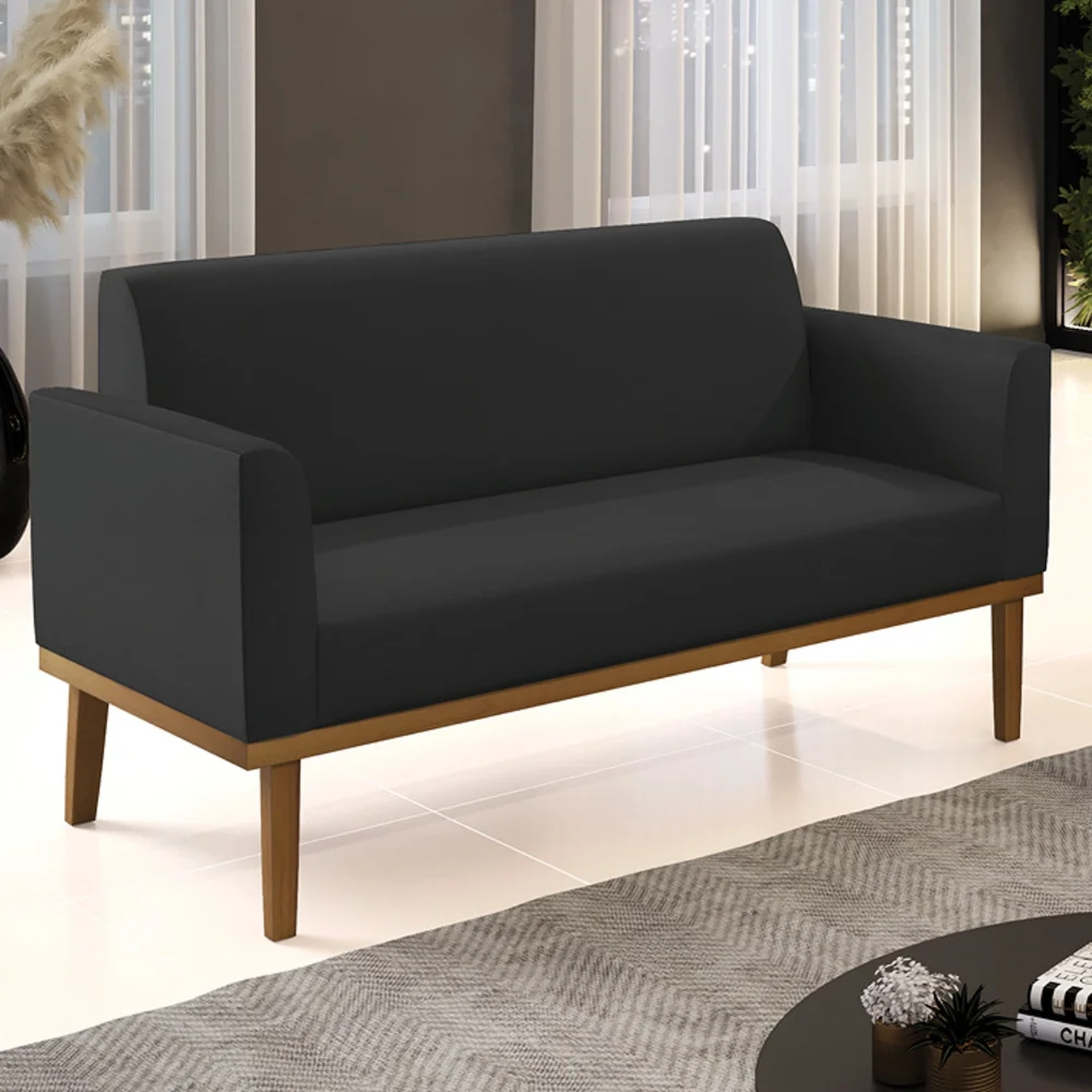 Querida por muitos pela beleza e conforto que proporciona, sua versatilidade dá a liberdade de poder usar na sua Sala De Estar, recepção e onde mais desejar! Você vai adorar o Sofá Namoradeira Base Madeira Castanho Maressa Sintético Preto, da Ibiza!