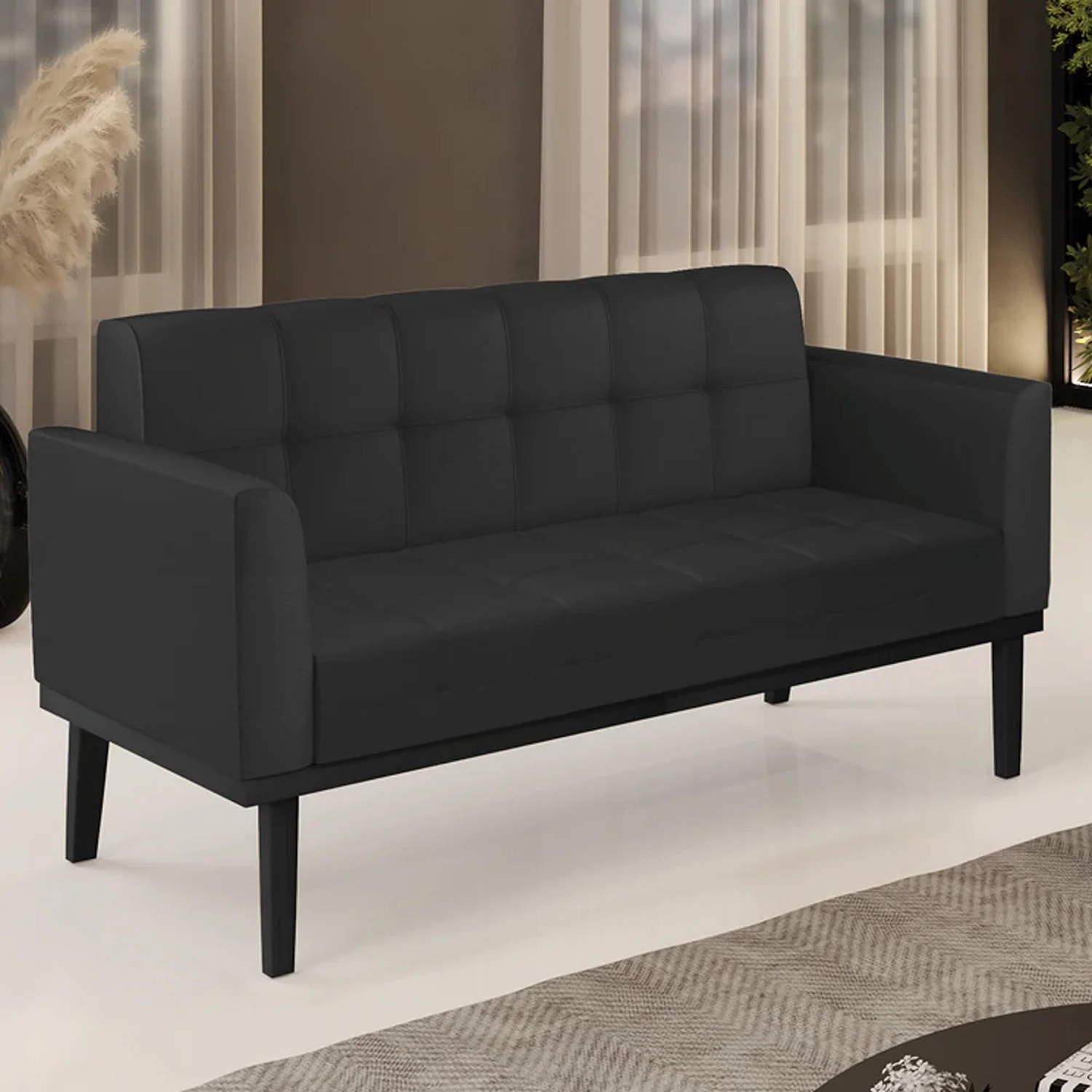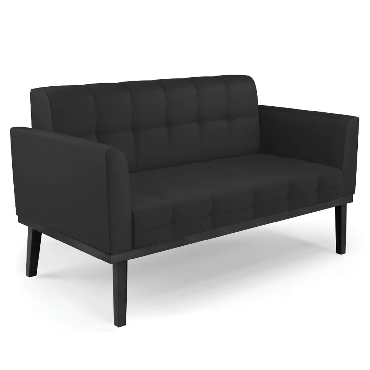 Querida por muitos pela beleza e conforto que proporciona, sua versatilidade dá a liberdade de poder usar na sua Sala De Estar, recepção e onde mais desejar! Você vai adorar o Sofá Namoradeira Base Madeira Preto Ana Sintético Preto, da Ibiza!