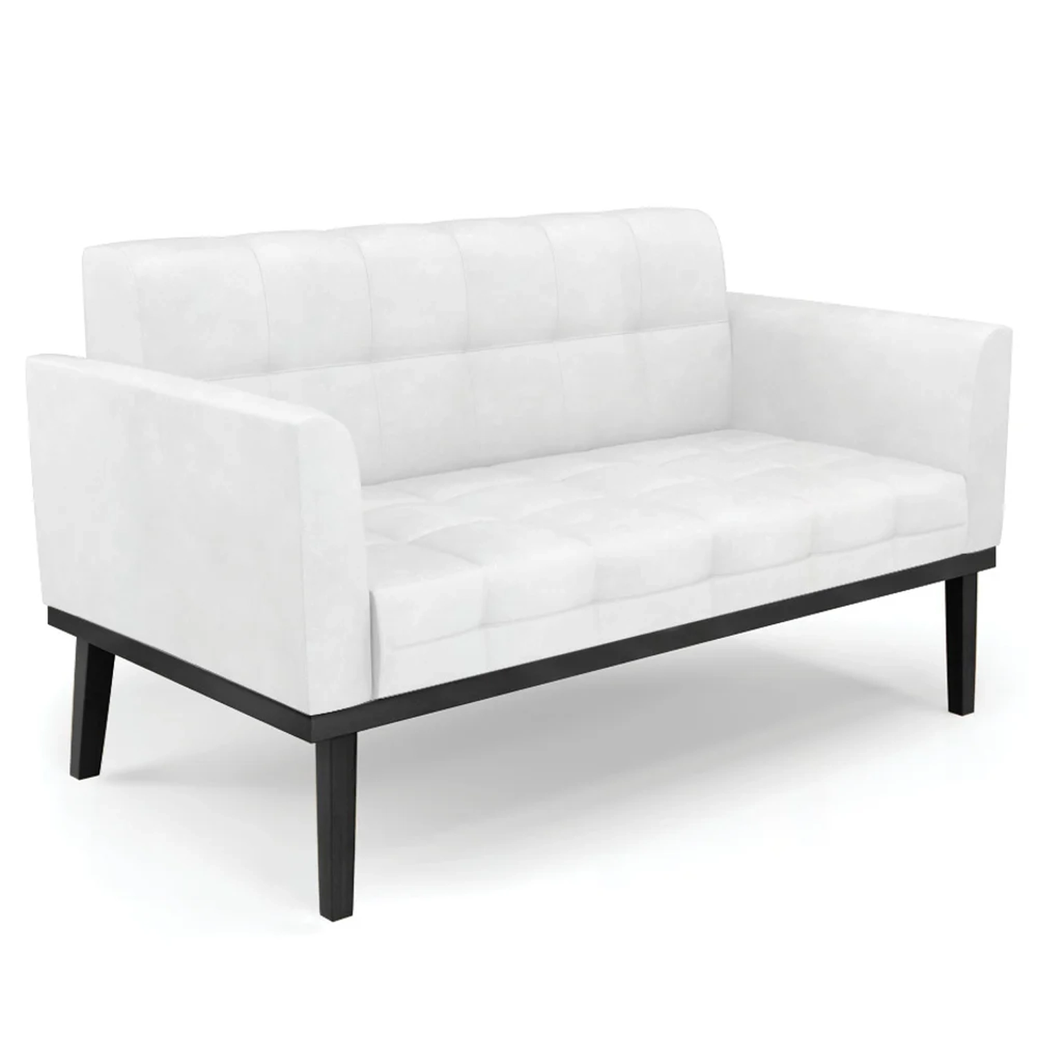 Querida por muitos pela beleza e conforto que proporciona, sua versatilidade dá a liberdade de poder usar na sua Sala De Estar, recepção e onde mais desejar! Você vai adorar o Sofá Namoradeira Base Madeira Preto Ana Sintético PU Branco, da Ibiza!