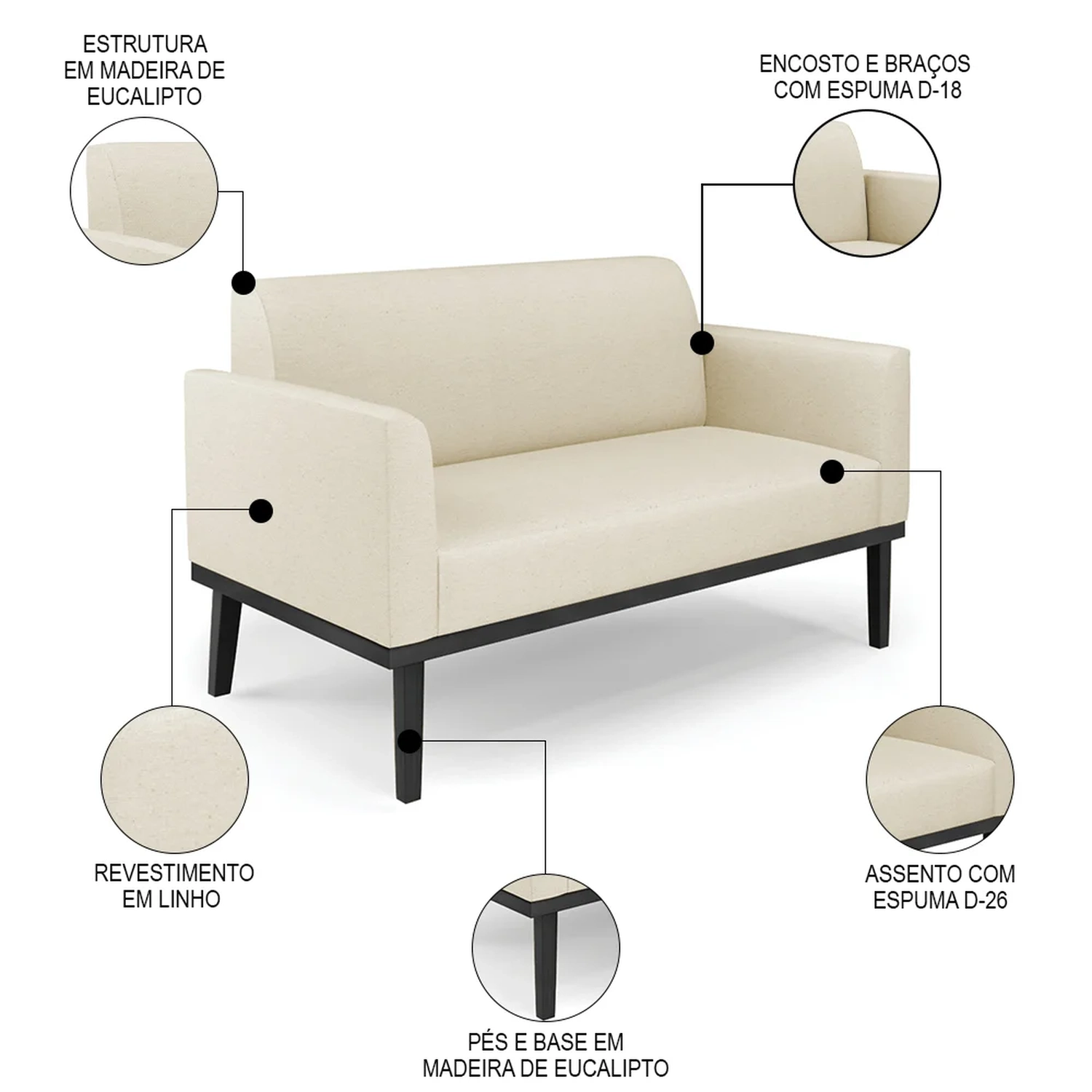 Material dos Pés: Madeira Eucalipto.