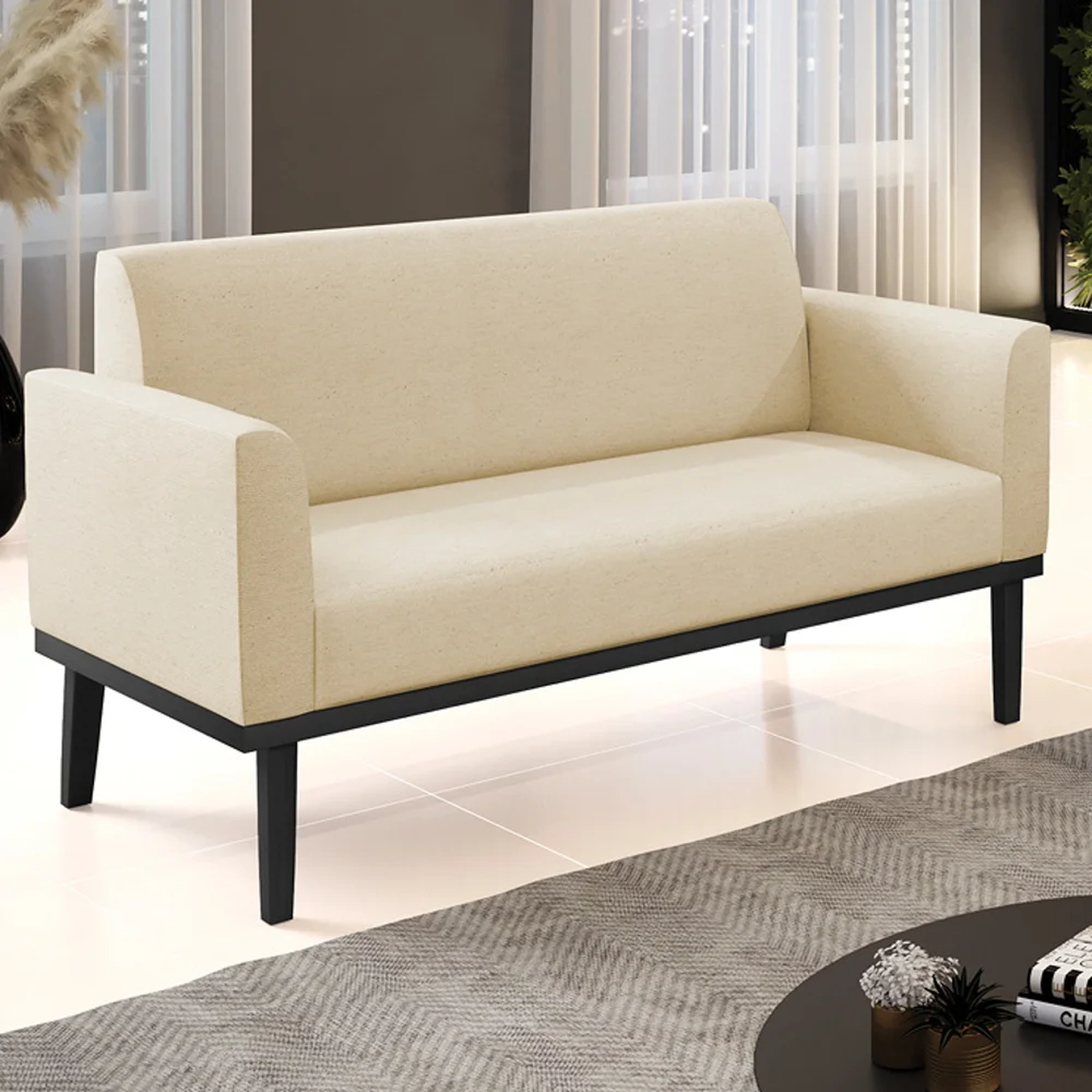 Querida por muitos pela beleza e conforto que proporciona, sua versatilidade dá a liberdade de poder usar na sua Sala De Estar, recepção e onde mais desejar! Você vai adorar o Sofá Namoradeira Base Madeira Preto Maressa Linho Bege, da Ibiza!