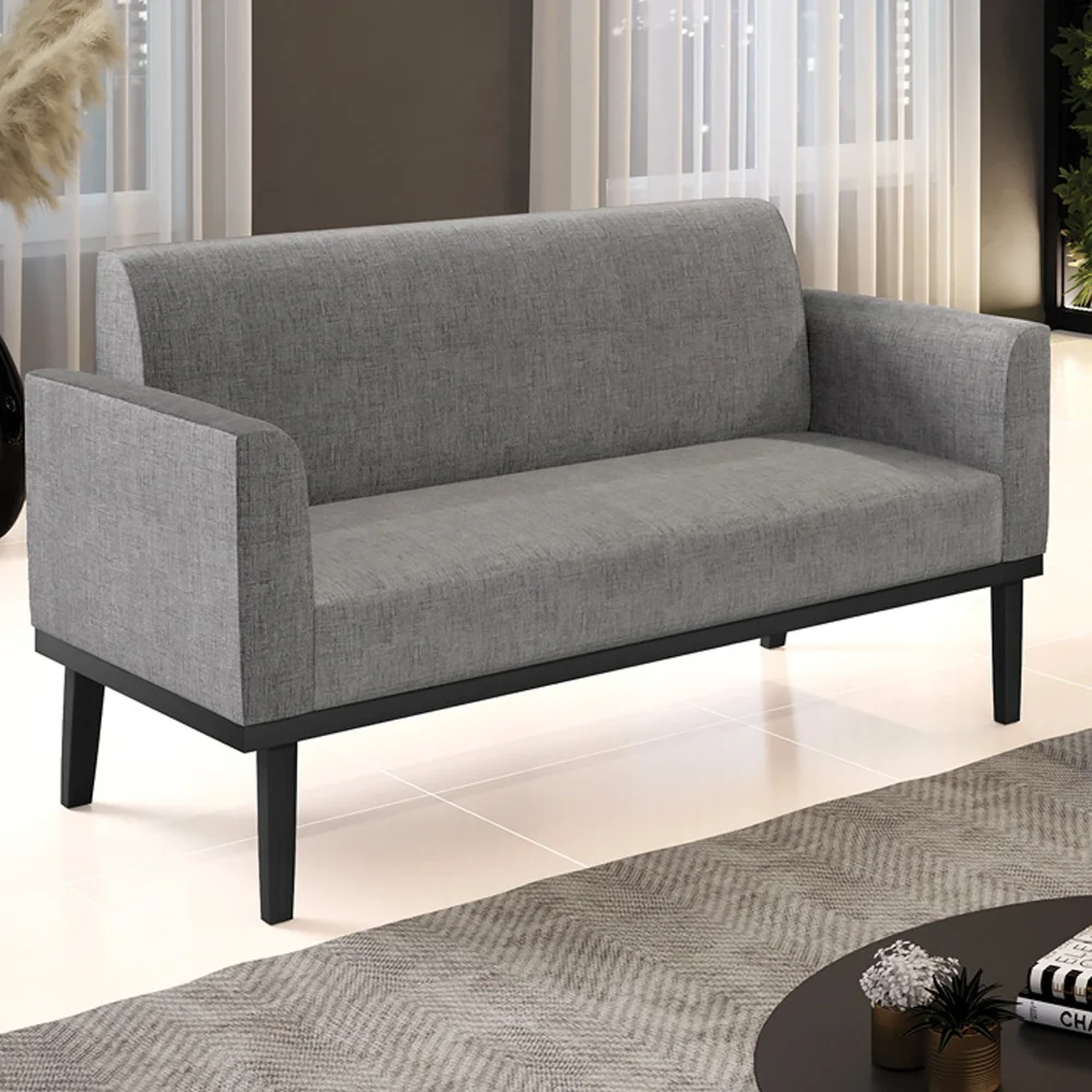 Querida por muitos pela beleza e conforto que proporciona, sua versatilidade dá a liberdade de poder usar na sua Sala De Estar, recepção e onde mais desejar! Você vai adorar o Sofá Namoradeira Base Madeira Preto Maressa Linho Grafite, da Ibiza!