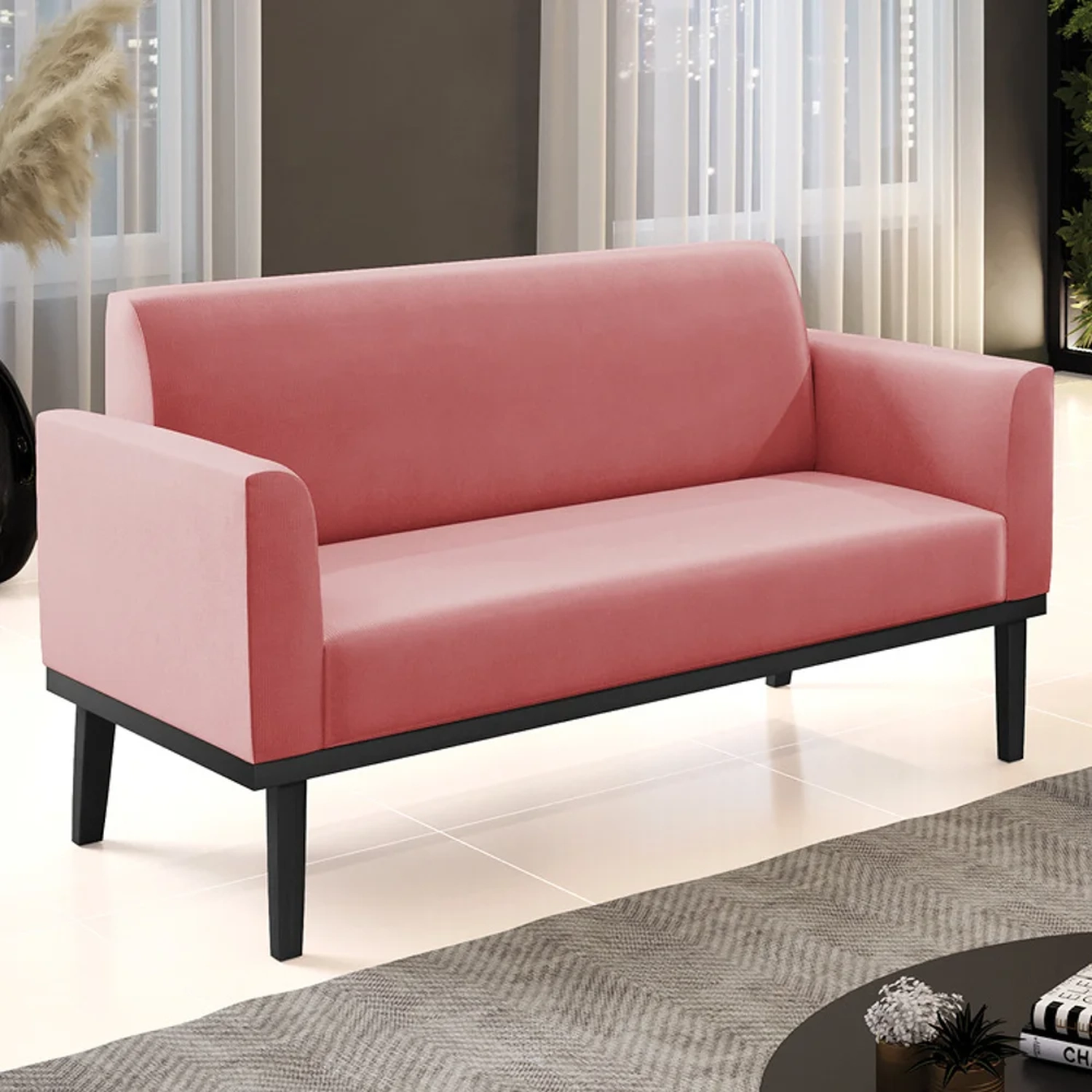 Querida por muitos pela beleza e conforto que proporciona, sua versatilidade dá a liberdade de poder usar na sua Sala De Estar, recepção e onde mais desejar! Você vai adorar o Sofá Namoradeira Base Madeira Preto Maressa Suede Rosê, da Ibiza!