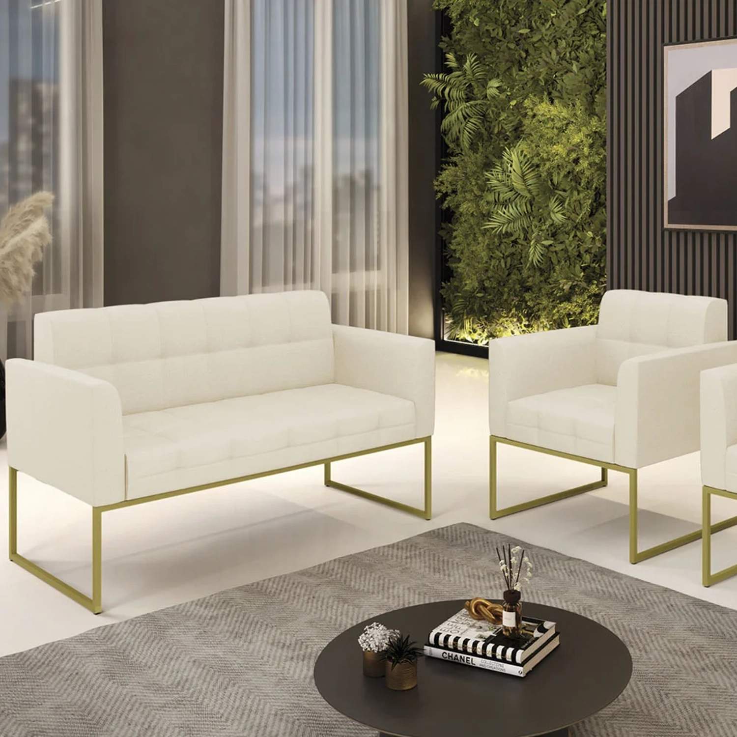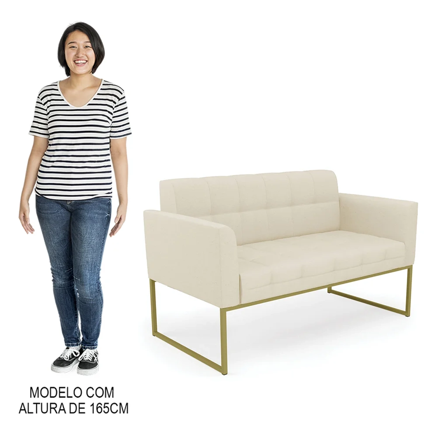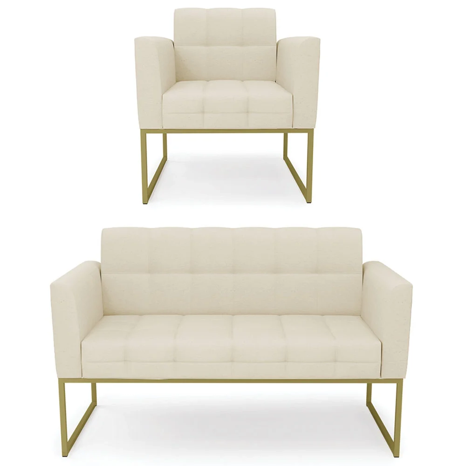 O Sofá Namoradeira e 1 Poltrona Base Industrial Dourado Ana Linho Bege, da Ibiza é o conjunto ideal para quem busca beleza, conforto e versatilidade. Você pode usar na sua Sala De Estar, recepção ou qualquer outro ambiente que desejar.