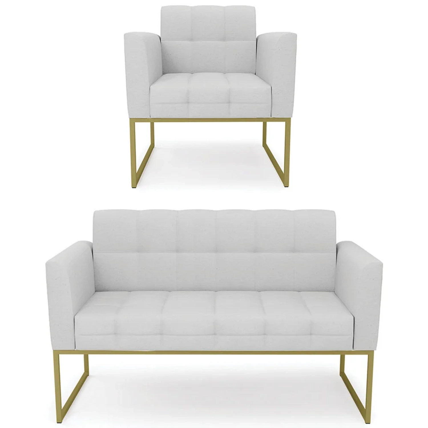 O Sofá Namoradeira e 1 Poltrona Base Industrial Dourado Ana Linho Cinza, da Ibiza é o conjunto ideal para quem busca beleza, conforto e versatilidade. Você pode usar na sua Sala De Estar, recepção ou qualquer outro ambiente que desejar.