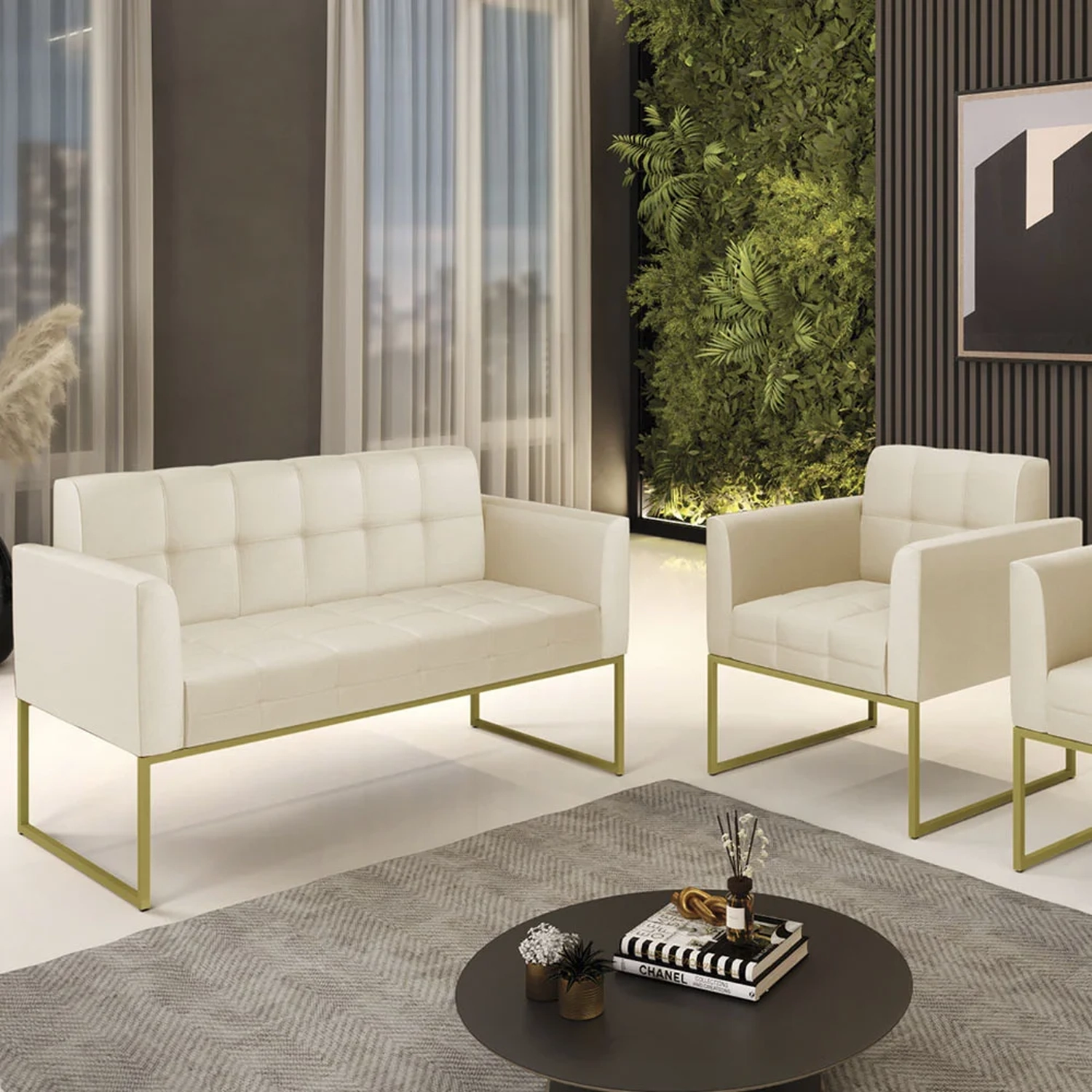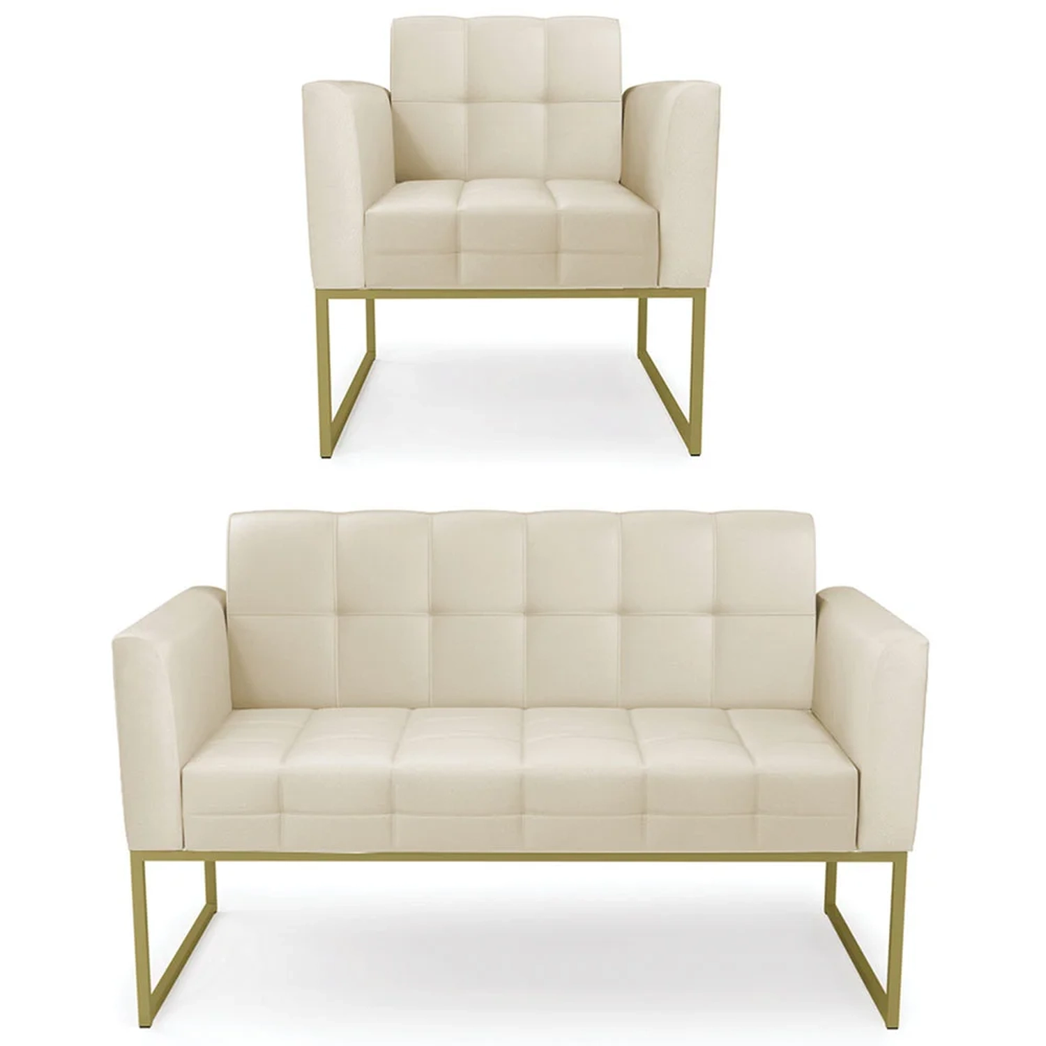 O Sofá Namoradeira e 1 Poltrona Base Industrial Dourado Ana Sintético Bege, da Ibiza é o conjunto ideal para quem busca beleza, conforto e versatilidade. Você pode usar na sua Sala De Estar, recepção ou qualquer outro ambiente que desejar.