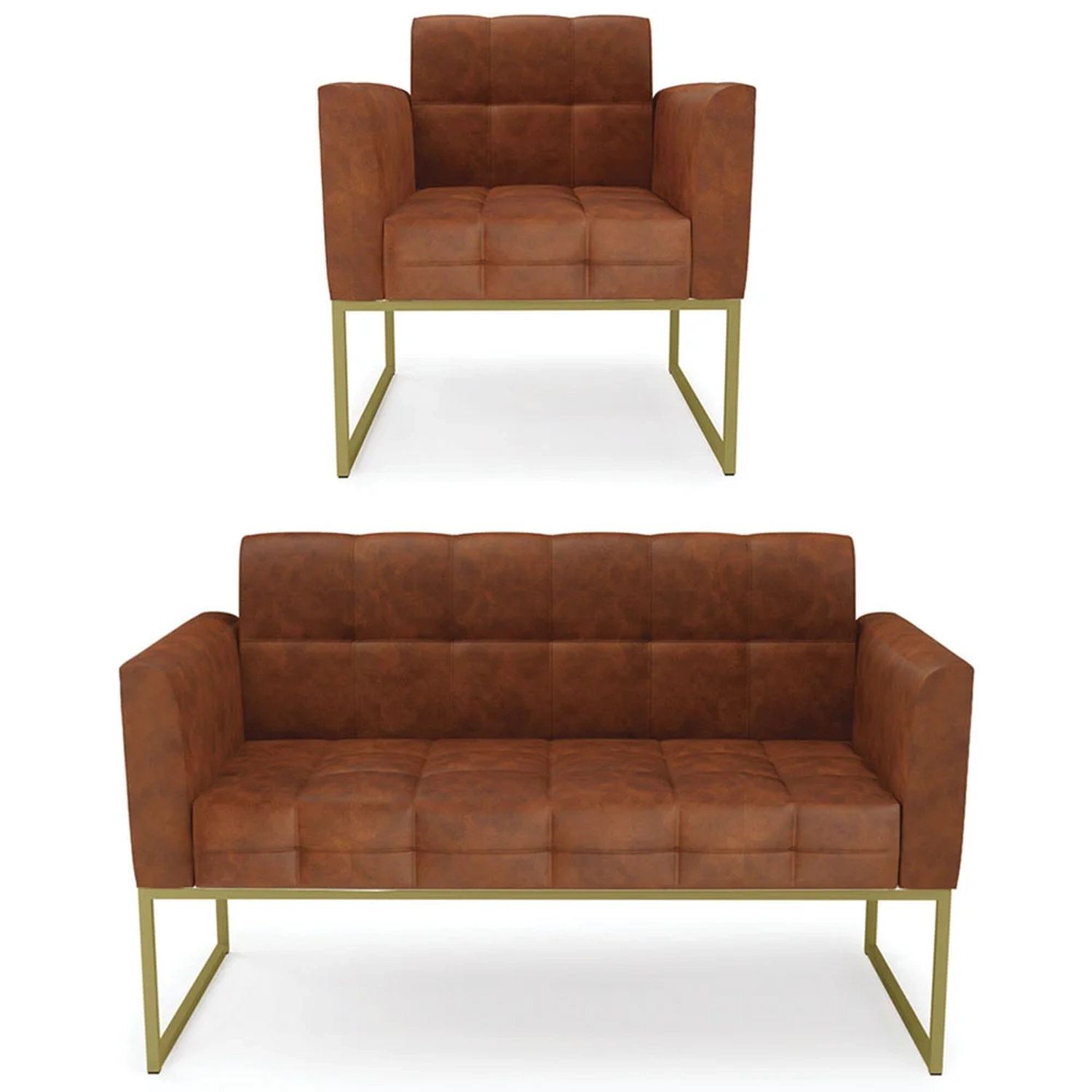 O Sofá Namoradeira e 1 Poltrona Base Industrial Dourado Ana Sintético PU Nozes, da Ibiza é o conjunto ideal para quem busca beleza, conforto e versatilidade. Você pode usar na sua Sala De Estar, recepção ou qualquer outro ambiente que desejar.