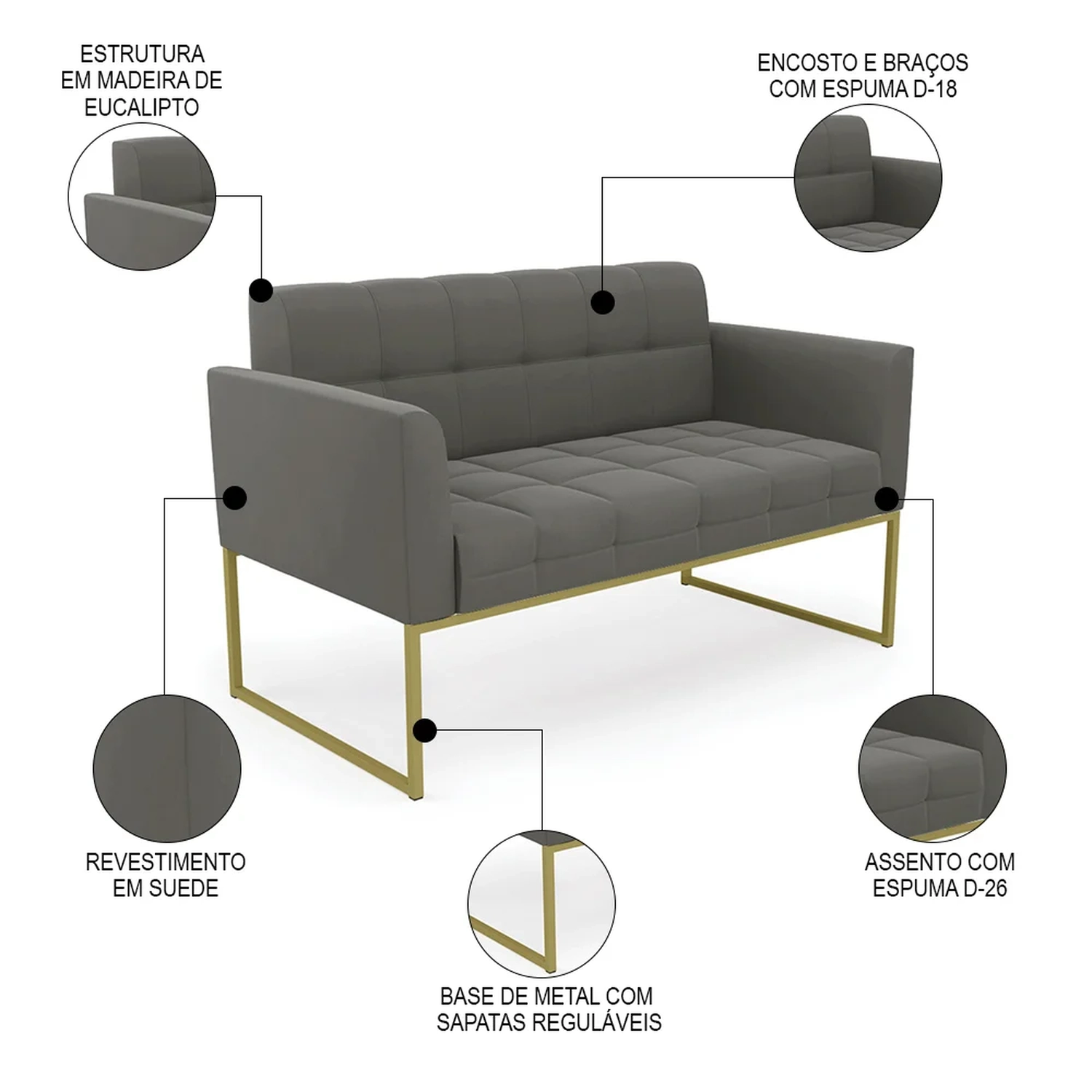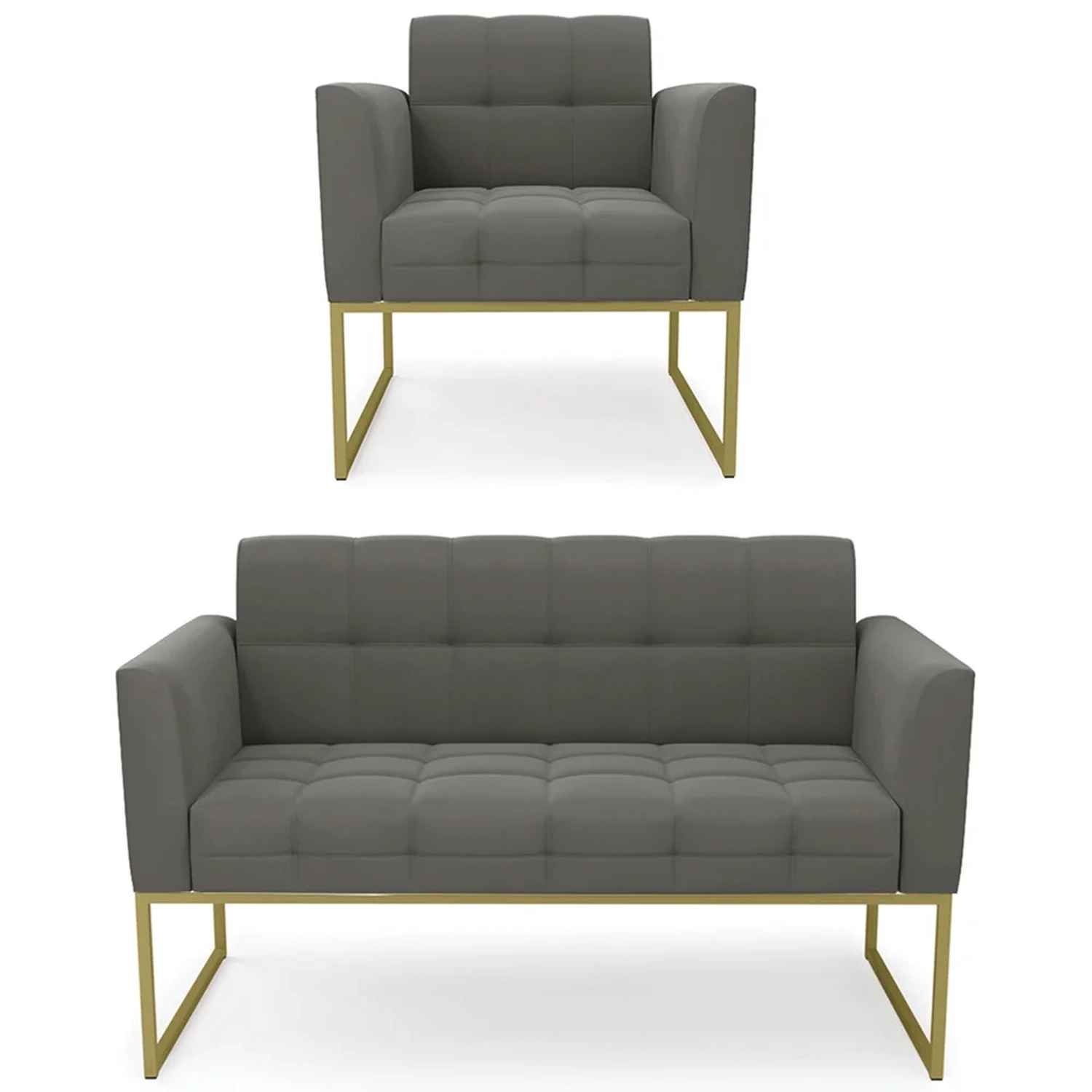 O Sofá Namoradeira e 1 Poltrona Base Industrial Dourado Ana Suede Grafite, da Ibiza é o conjunto ideal para quem busca beleza, conforto e versatilidade. Você pode usar na sua Sala De Estar, recepção ou qualquer outro ambiente que desejar.