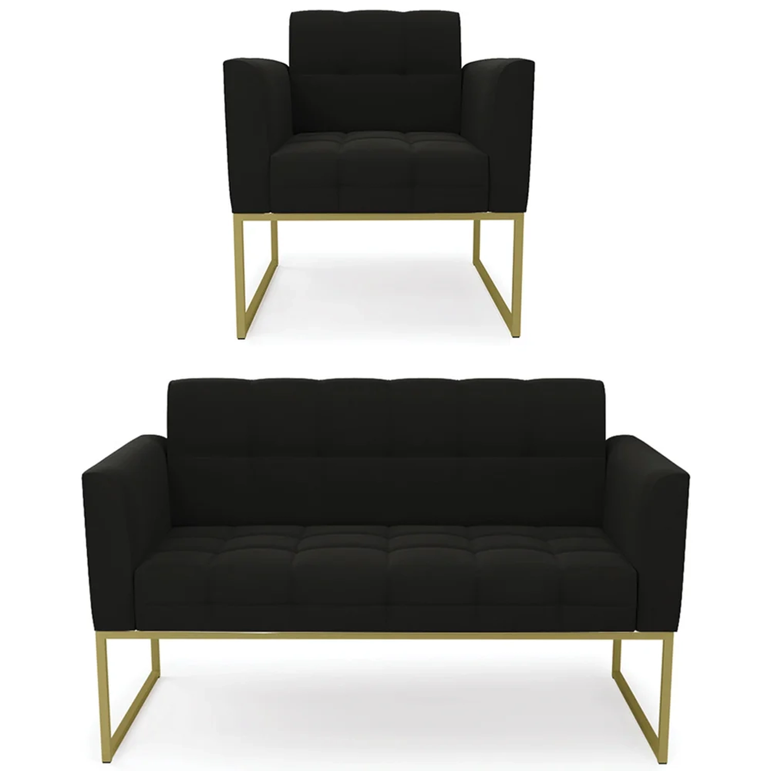 O Sofá Namoradeira e 1 Poltrona Base Industrial Dourado Ana Suede Preto, da Ibiza é o conjunto ideal para quem busca beleza, conforto e versatilidade. Você pode usar na sua Sala De Estar, recepção ou qualquer outro ambiente que desejar.