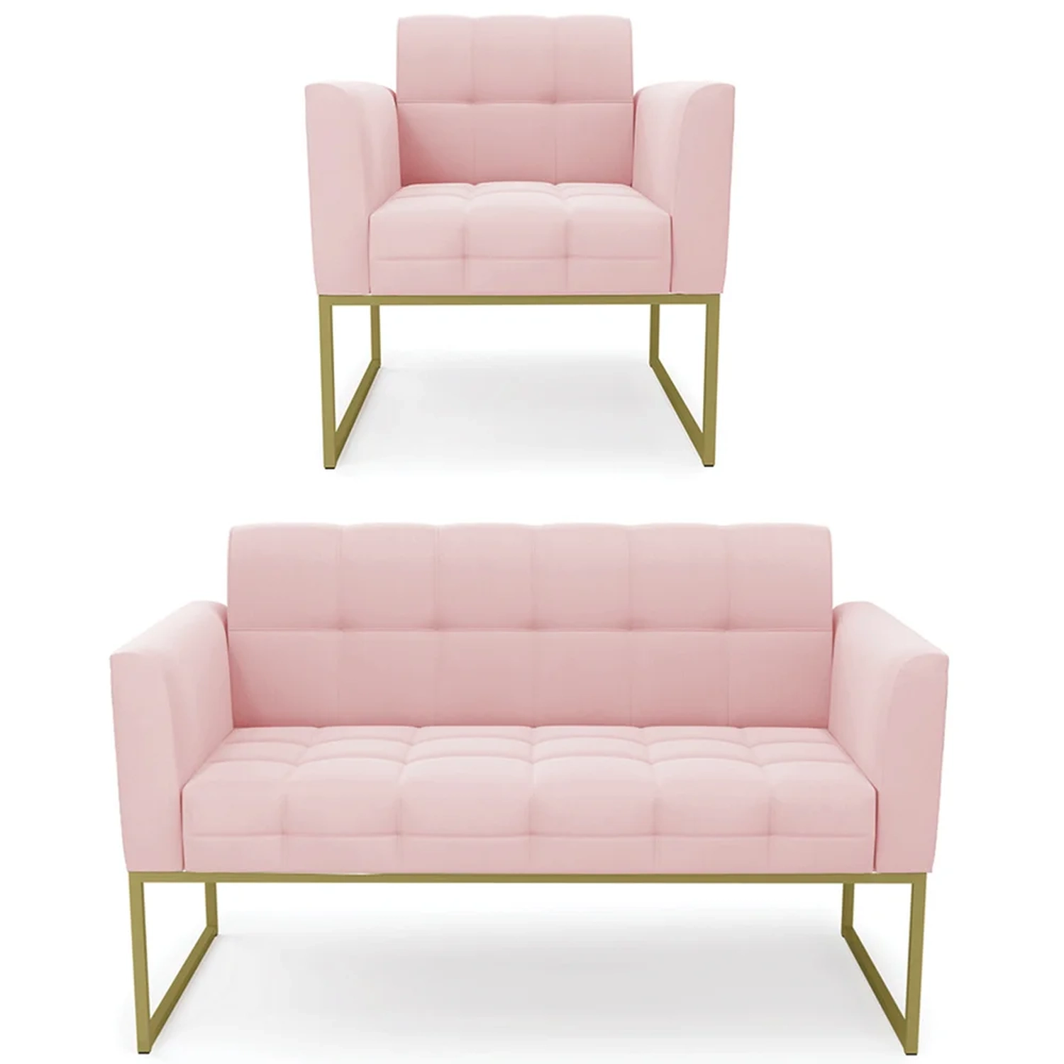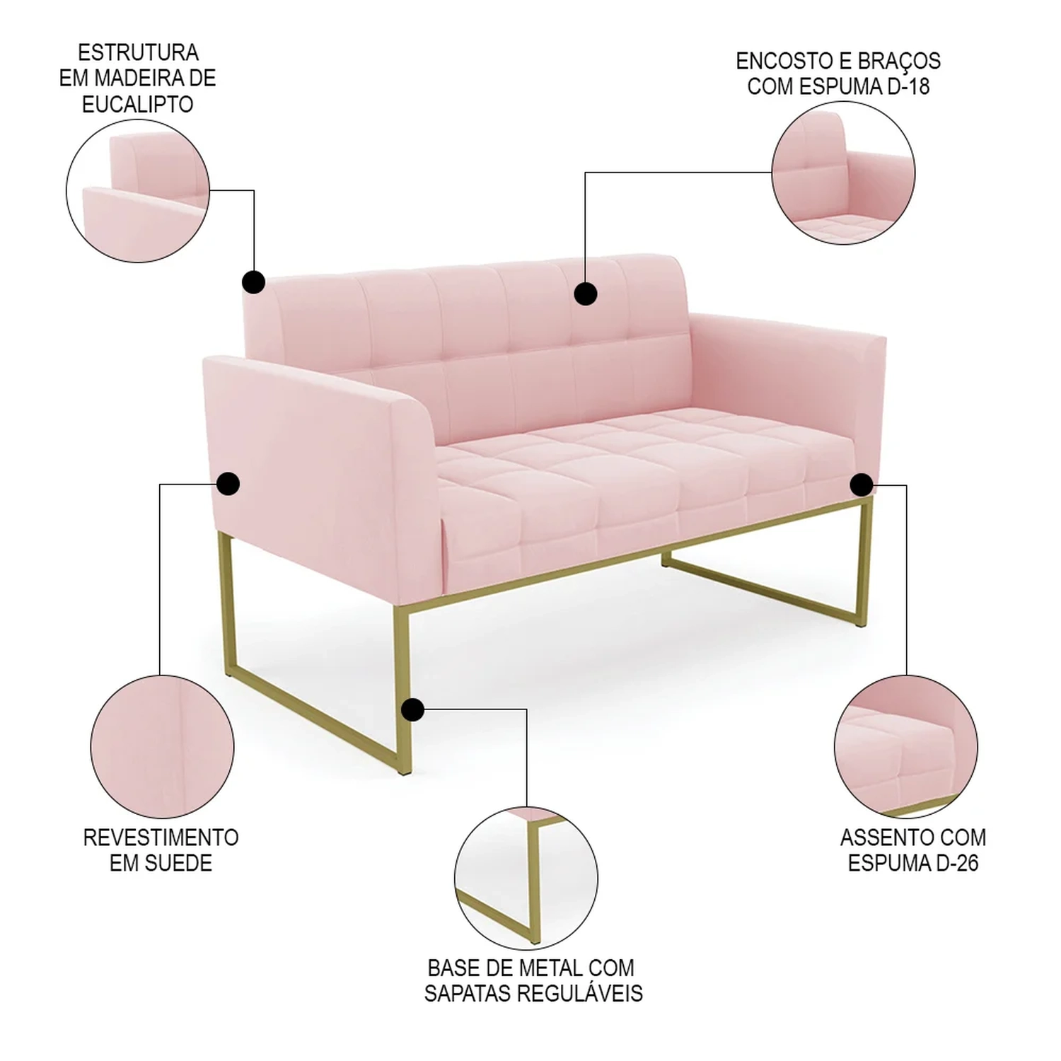 O Sofá Namoradeira e 1 Poltrona Base Industrial Dourado Ana Suede Rosa Bebê, da Ibiza é o conjunto ideal para quem busca beleza, conforto e versatilidade. Você pode usar na sua Sala De Estar, recepção ou qualquer outro ambiente que desejar.