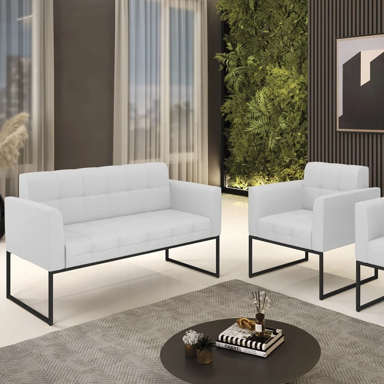 O Sofá Namoradeira e 1 Poltrona Base Industrial Preto Ana Linho Cinza, da Ibiza é o conjunto ideal para quem busca beleza, conforto e versatilidade. Você pode usar na sua Sala De Estar, recepção ou qualquer outro ambiente que desejar.