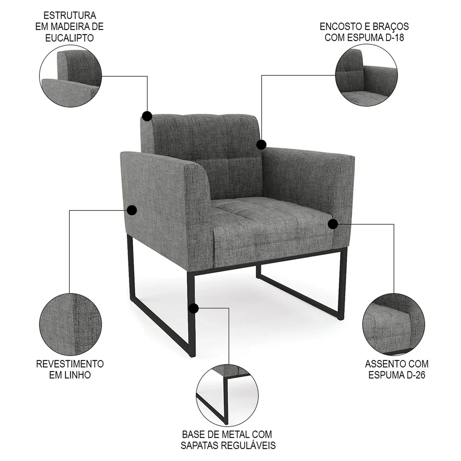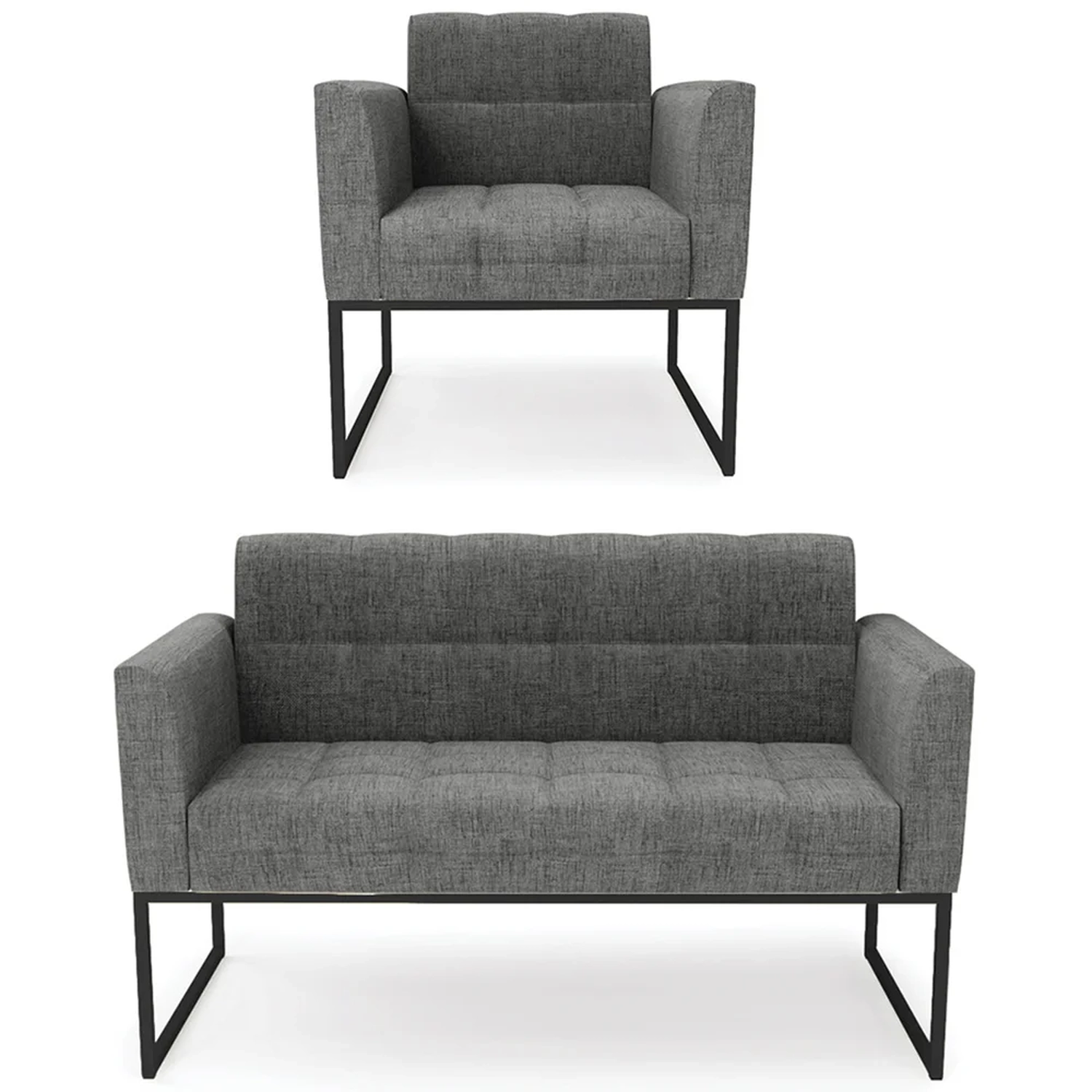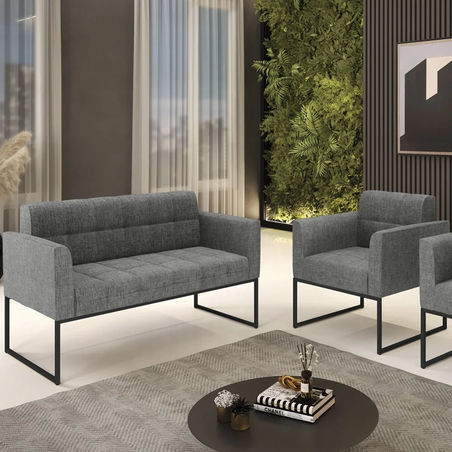 O Sofá Namoradeira e 1 Poltrona Base Industrial Preto Ana Linho Grafite, da Ibiza é o conjunto ideal para quem busca beleza, conforto e versatilidade. Você pode usar na sua Sala De Estar, recepção ou qualquer outro ambiente que desejar.