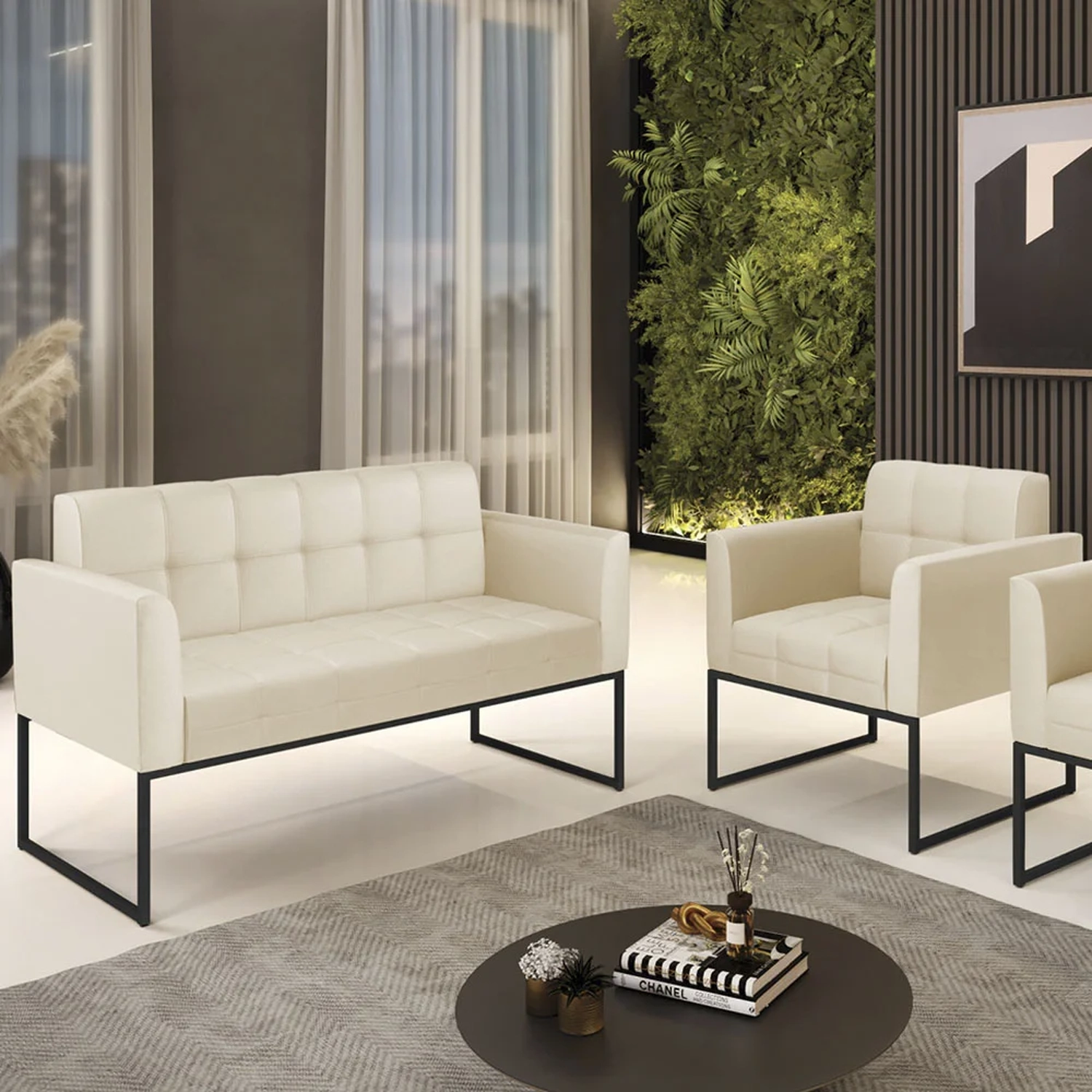 O Sofá Namoradeira e 1 Poltrona Base Industrial Preto Ana Sintético Bege, da Ibiza é o conjunto ideal para quem busca beleza, conforto e versatilidade. Você pode usar na sua Sala De Estar, recepção ou qualquer outro ambiente que desejar.