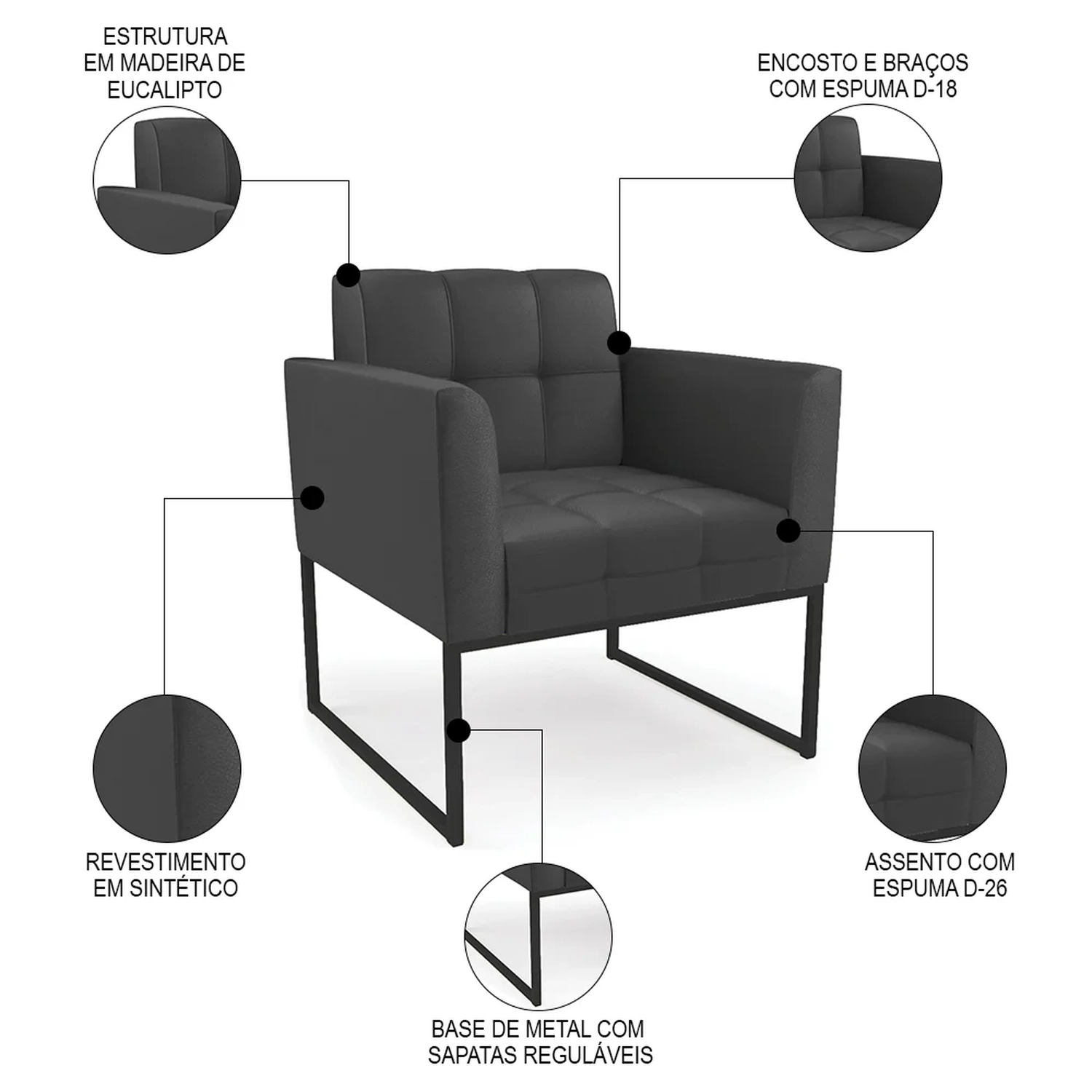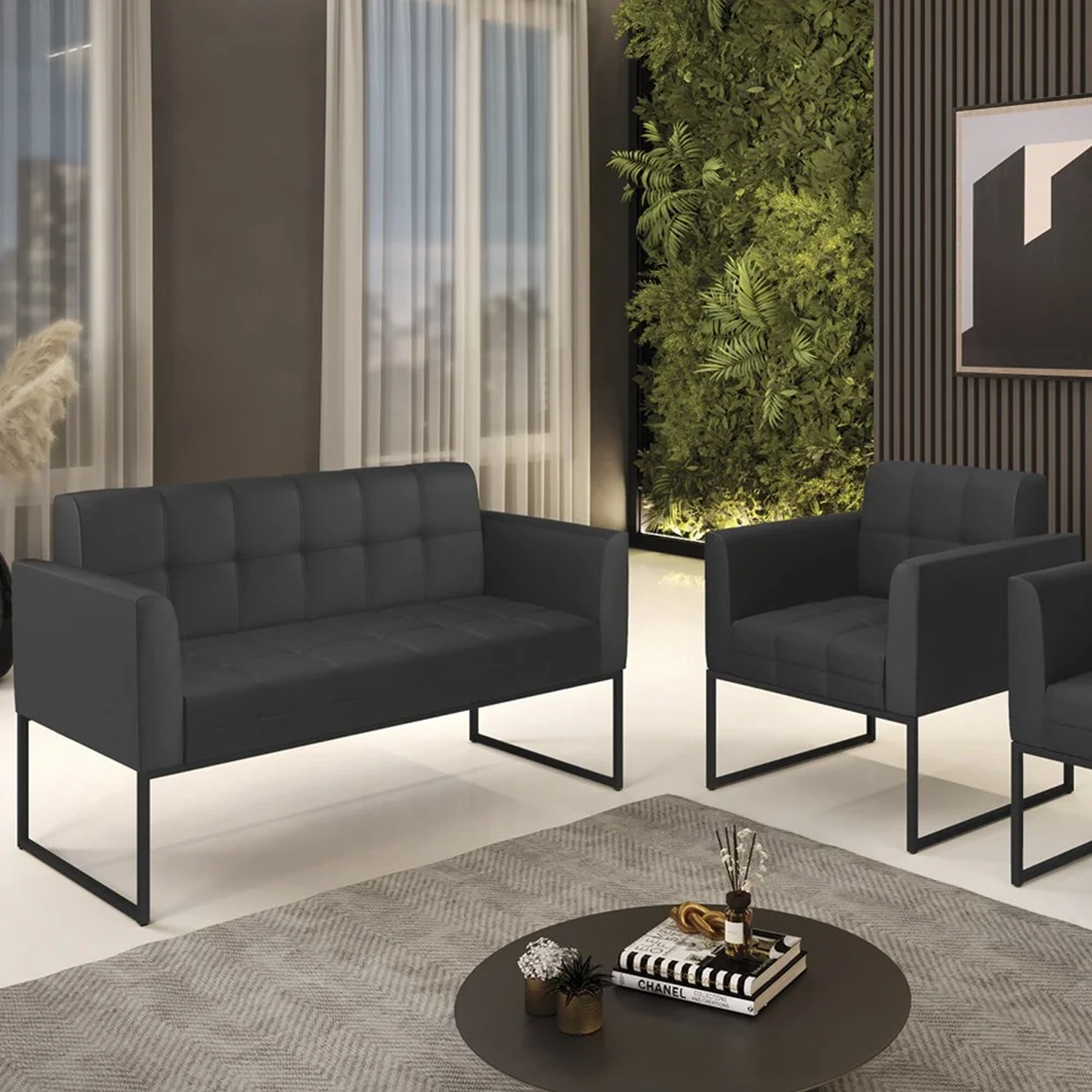 O Sofá Namoradeira e 1 Poltrona Base Industrial Preto Ana Sintético Preto, da Ibiza é o conjunto ideal para quem busca beleza, conforto e versatilidade. Você pode usar na sua Sala De Estar, recepção ou qualquer outro ambiente que desejar.