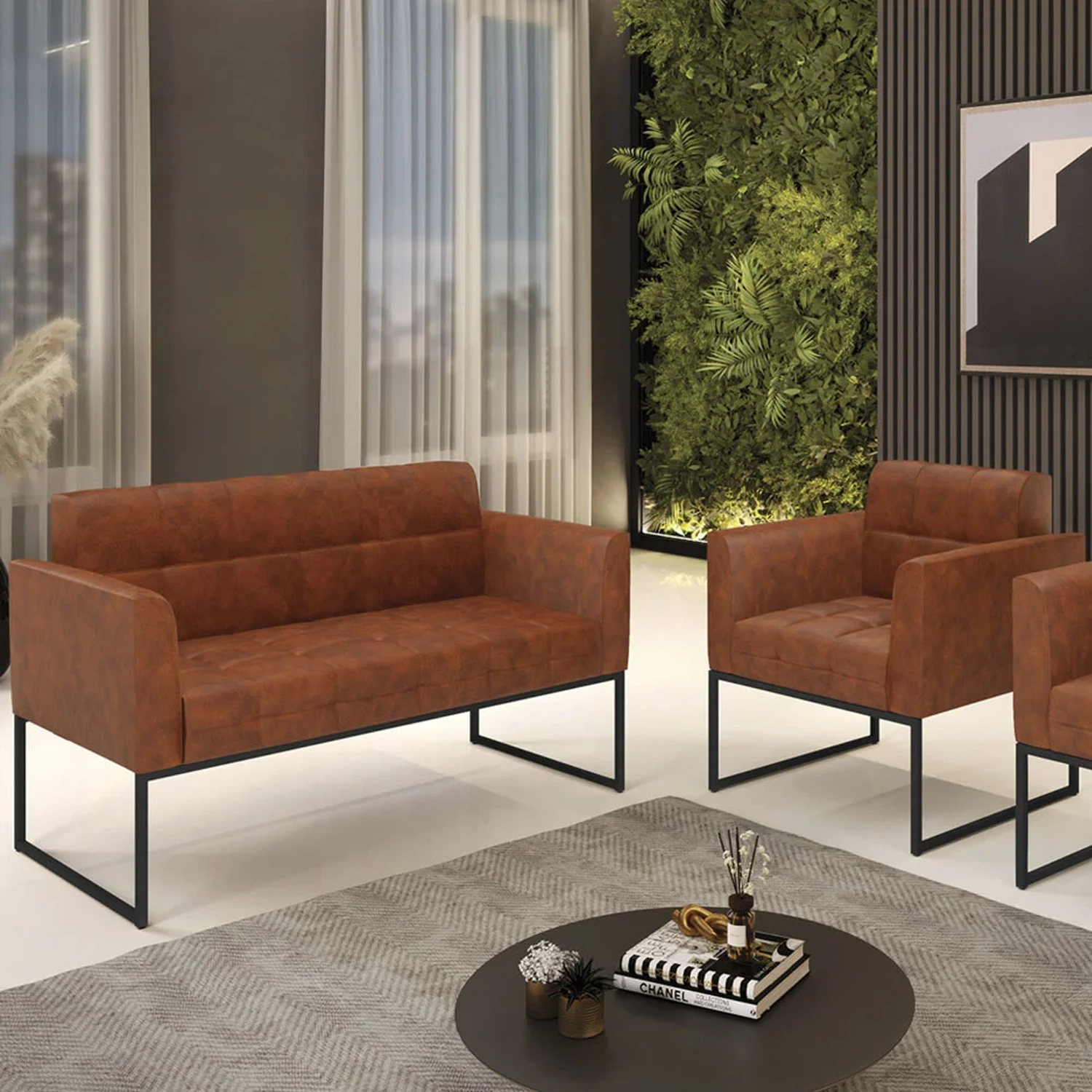 O Sofá Namoradeira e 1 Poltrona Base Industrial Preto Ana Sintético PU Nozes, da Ibiza é o conjunto ideal para quem busca beleza, conforto e versatilidade. Você pode usar na sua Sala De Estar, recepção ou qualquer outro ambiente que desejar.