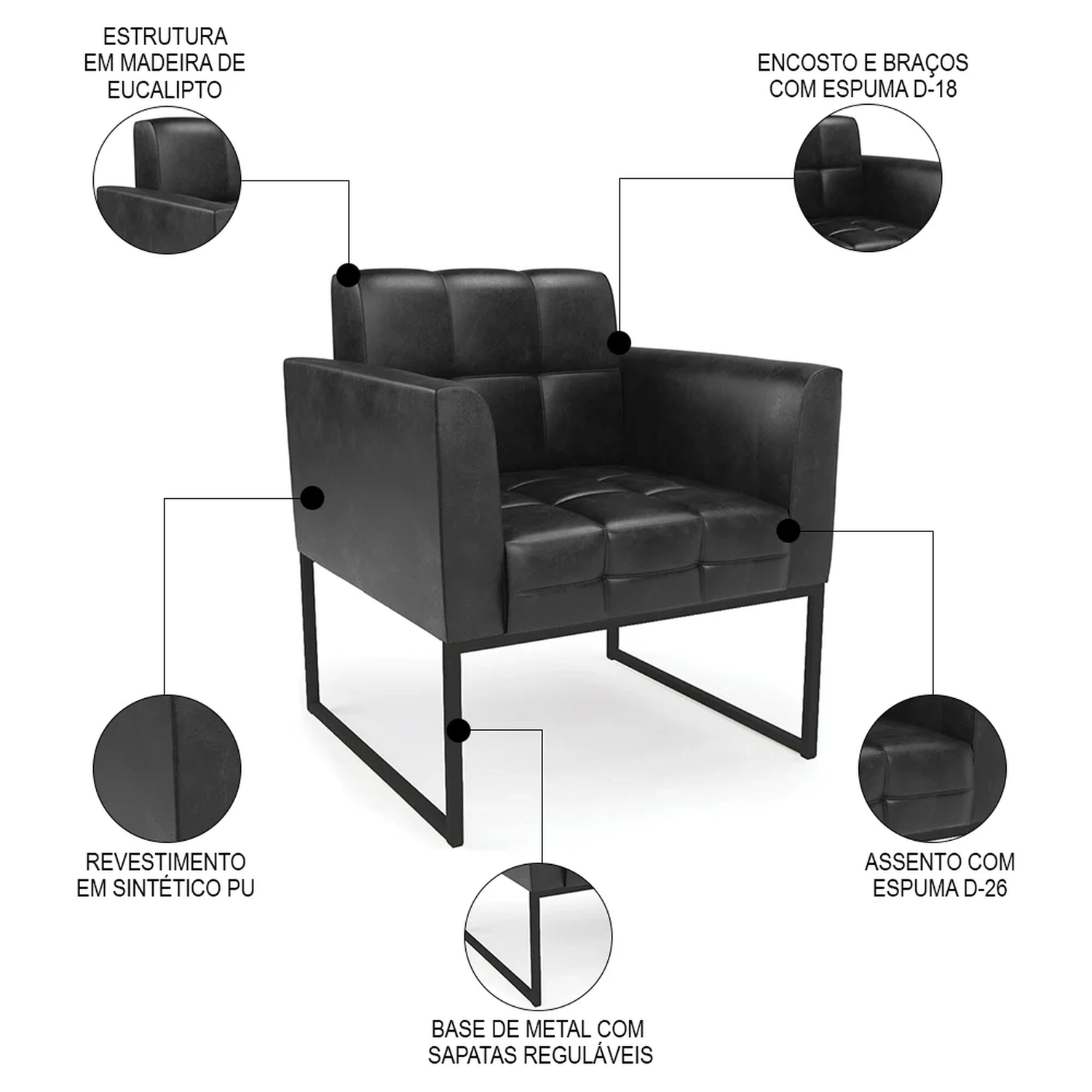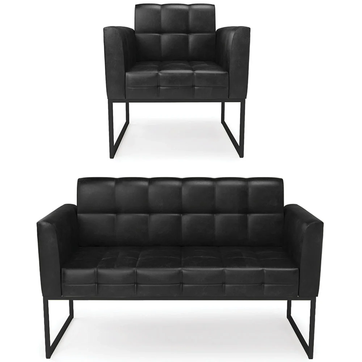O Sofá Namoradeira e 1 Poltrona Base Industrial Preto Ana Sintético PU Preto, da Ibiza é o conjunto ideal para quem busca beleza, conforto e versatilidade. Você pode usar na sua Sala De Estar, recepção ou qualquer outro ambiente que desejar.