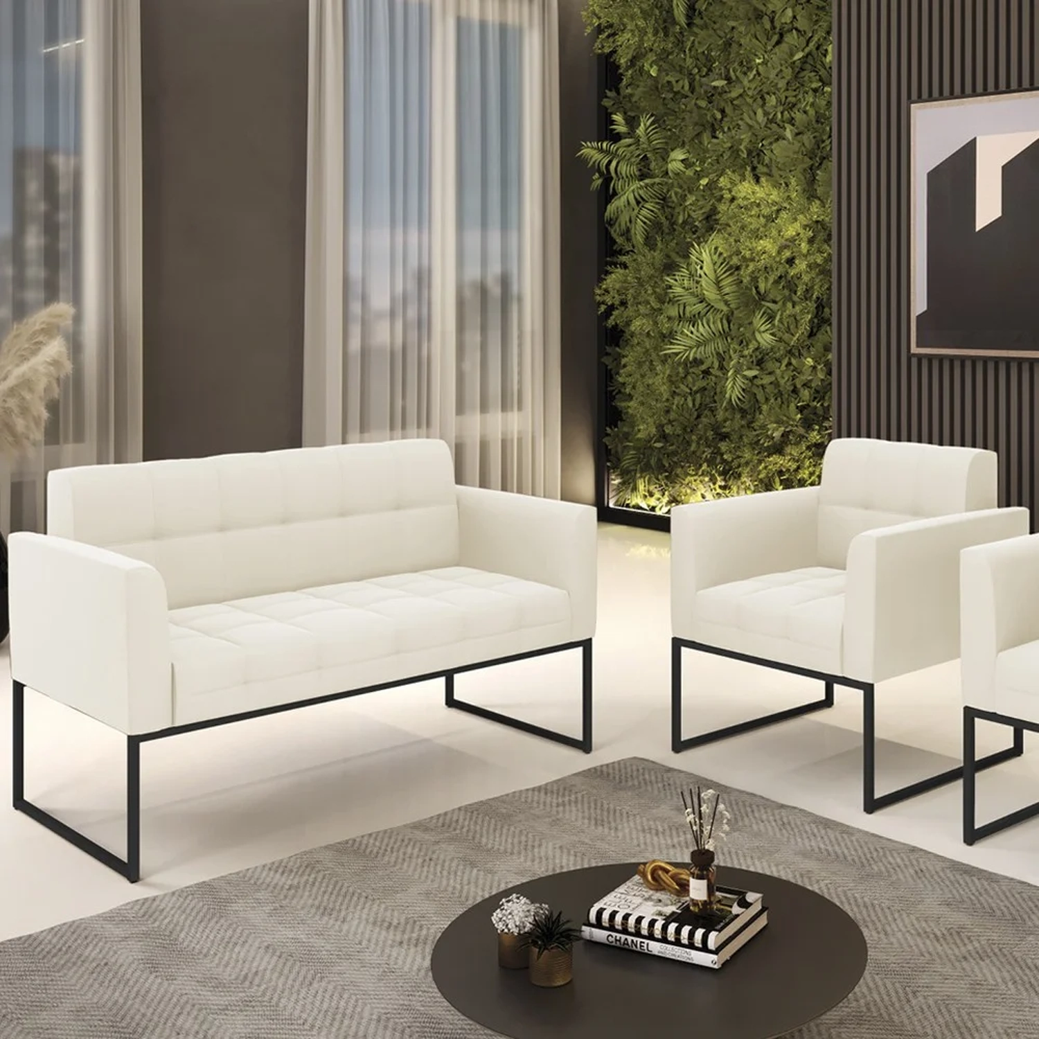 O Sofá Namoradeira e 1 Poltrona Base Industrial Preto Ana Veludo Bege, da Ibiza é o conjunto ideal para quem busca beleza, conforto e versatilidade. Você pode usar na sua Sala De Estar, recepção ou qualquer outro ambiente que desejar.