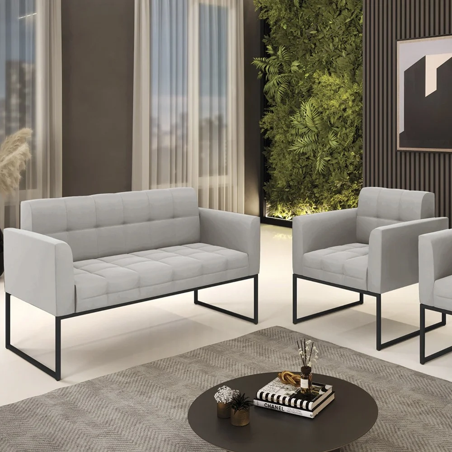 O Sofá Namoradeira e 1 Poltrona Base Industrial Preto Ana Veludo Cinza, da Ibiza é o conjunto ideal para quem busca beleza, conforto e versatilidade. Você pode usar na sua Sala De Estar, recepção ou qualquer outro ambiente que desejar.
