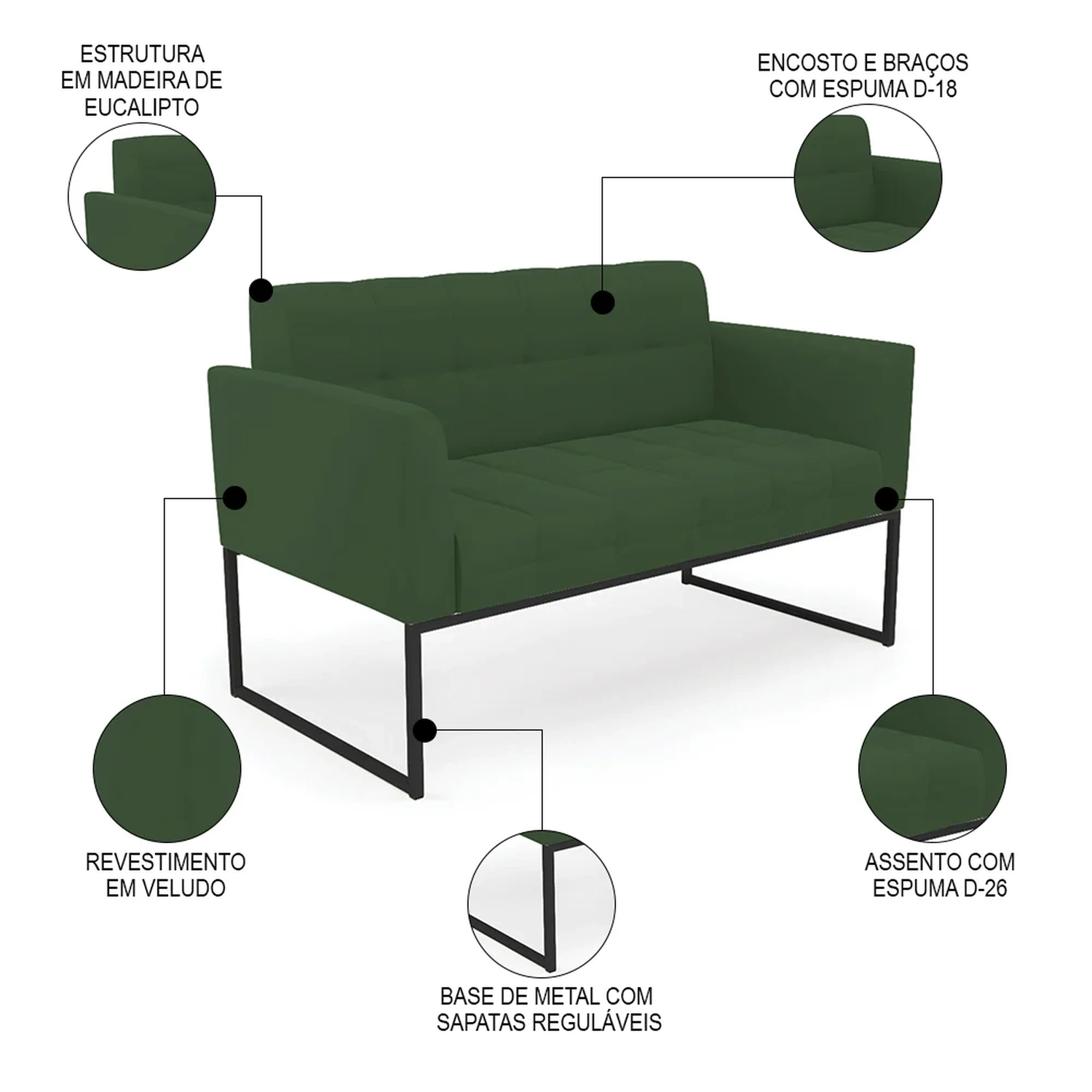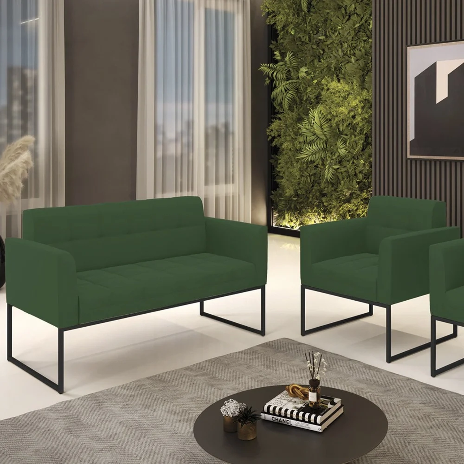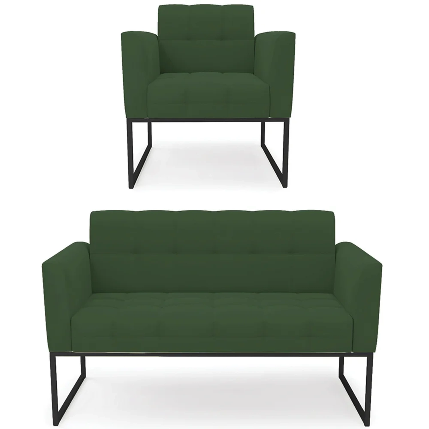 O Sofá Namoradeira e 1 Poltrona Base Industrial Preto Ana Veludo Verde, da Ibiza é o conjunto ideal para quem busca beleza, conforto e versatilidade. Você pode usar na sua Sala De Estar, recepção ou qualquer outro ambiente que desejar.