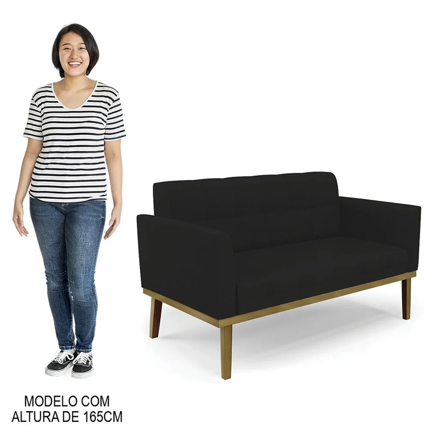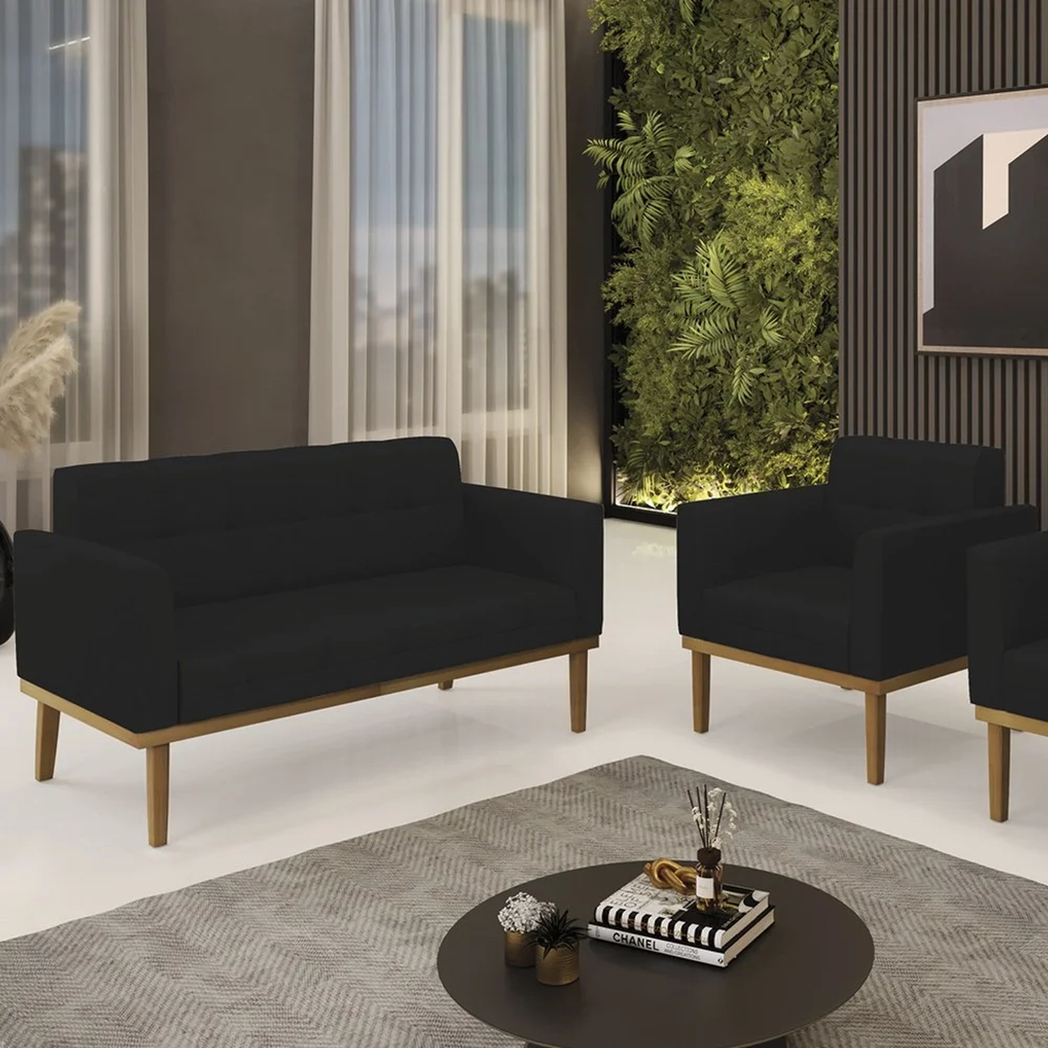O Sofá Namoradeira e 1 Poltrona Base Madeira Castanho Ana Linho Preto, da Ibiza é o conjunto ideal para quem busca beleza, conforto e versatilidade. Você pode usar na sua Sala De Estar, recepção ou qualquer outro ambiente que desejar.