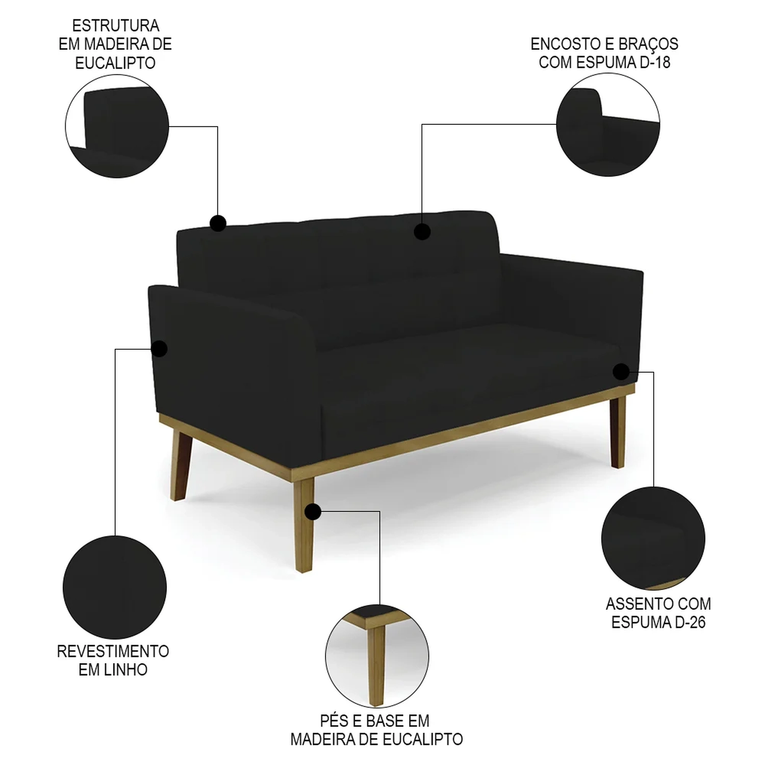 Material dos Pés: Madeira Eucalipto.
