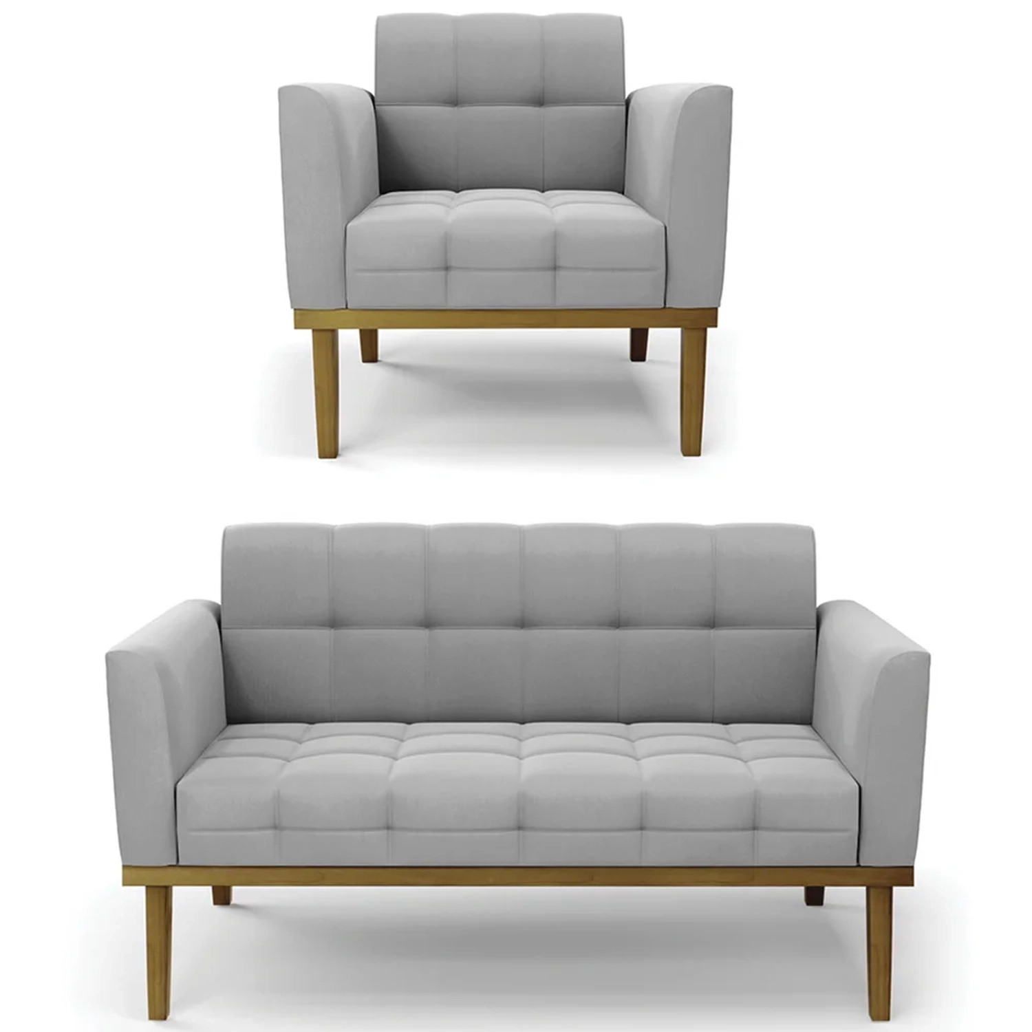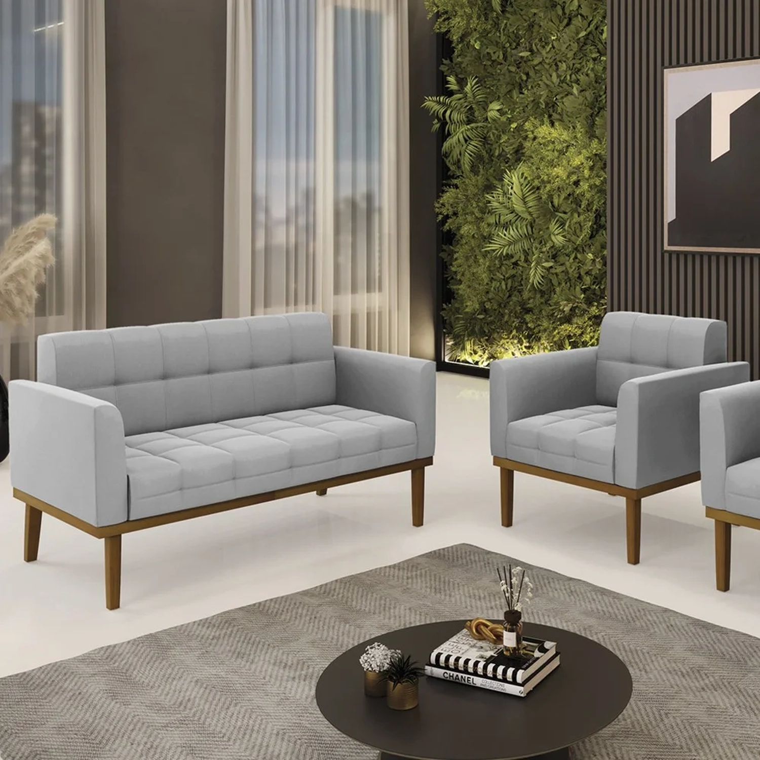 O Sofá Namoradeira e 1 Poltrona Base Madeira Castanho Ana Suede Cinza, da Ibiza é o conjunto ideal para quem busca beleza, conforto e versatilidade. Você pode usar na sua Sala De Estar, recepção ou qualquer outro ambiente que desejar.