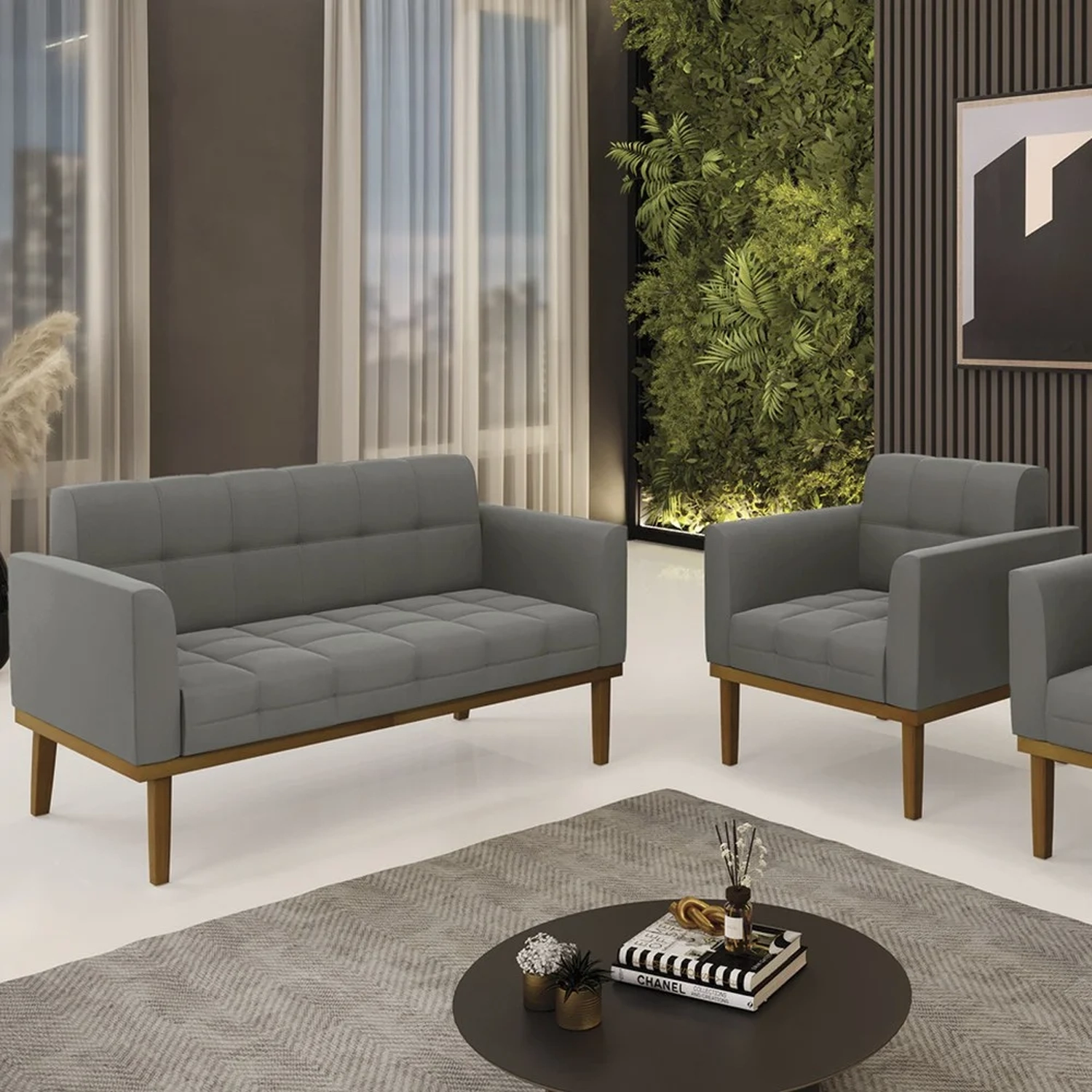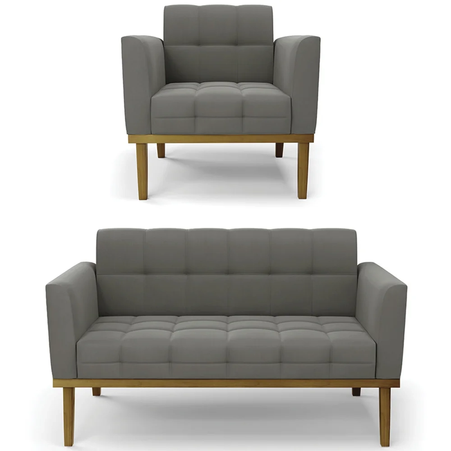 O Sofá Namoradeira e 1 Poltrona Base Madeira Castanho Ana Suede Grafite, da Ibiza é o conjunto ideal para quem busca beleza, conforto e versatilidade. Você pode usar na sua Sala De Estar, recepção ou qualquer outro ambiente que desejar.