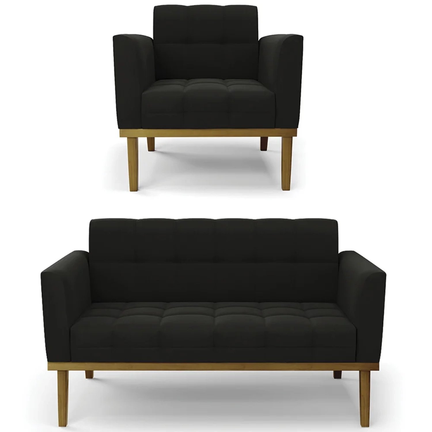 O Sofá Namoradeira e 1 Poltrona Base Madeira Castanho Ana Suede Preto, da Ibiza é o conjunto ideal para quem busca beleza, conforto e versatilidade. Você pode usar na sua Sala De Estar, recepção ou qualquer outro ambiente que desejar.