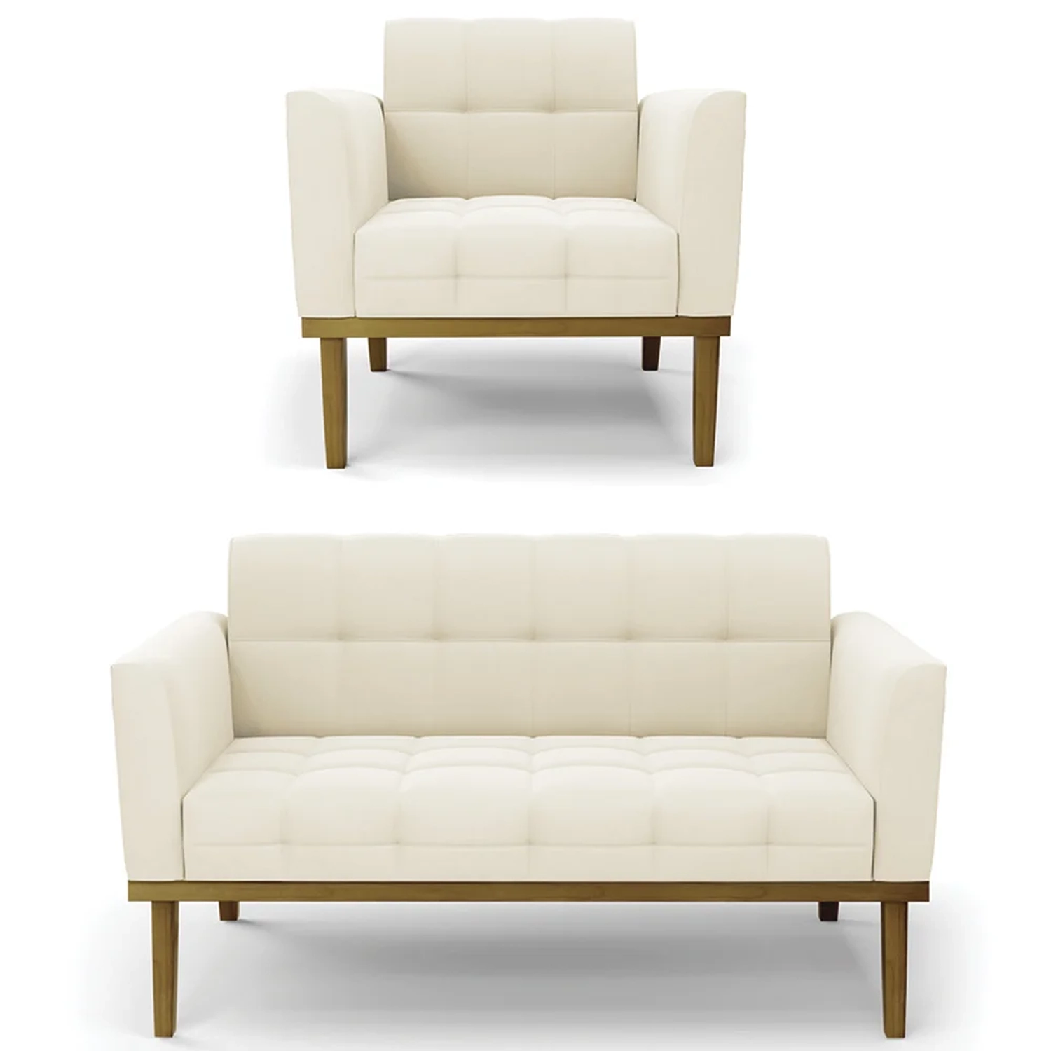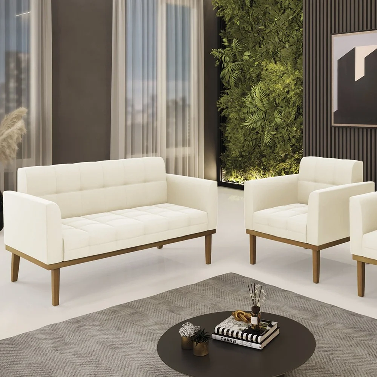 O Sofá Namoradeira e 1 Poltrona Base Madeira Castanho Ana Veludo Bege, da Ibiza é o conjunto ideal para quem busca beleza, conforto e versatilidade. Você pode usar na sua Sala De Estar, recepção ou qualquer outro ambiente que desejar.